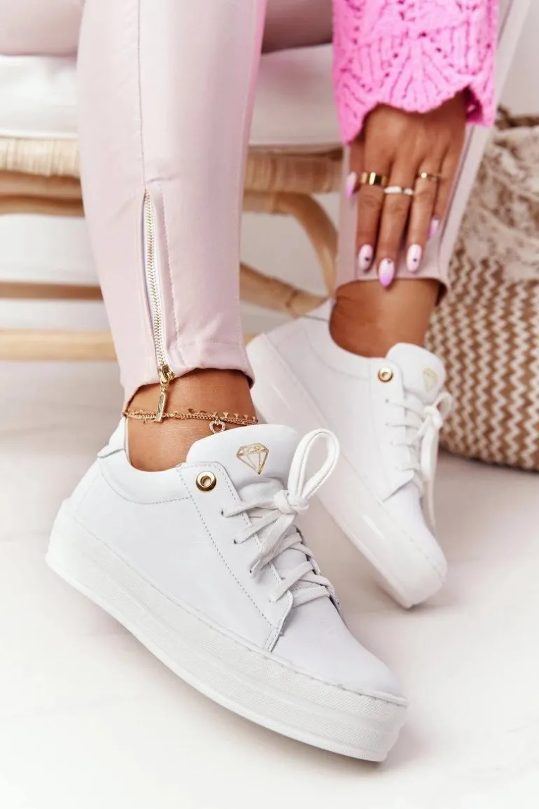 Damskie tenisówki na platformie marki Nicole. Buty wykonane są ze skóry naturalnej. Klasyczna forma pasuje do wielu stylizacji. Buty dobrze dopasowują się do kształtu stopy, posiadają miękką wkładkę ze skóry naturalnej. Koniecznie sprawdź całą naszą kolekcję damskich trampek! Przy wyborze rozmiaru prosimy sugerować się tabelą rozmiarów.