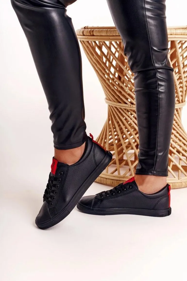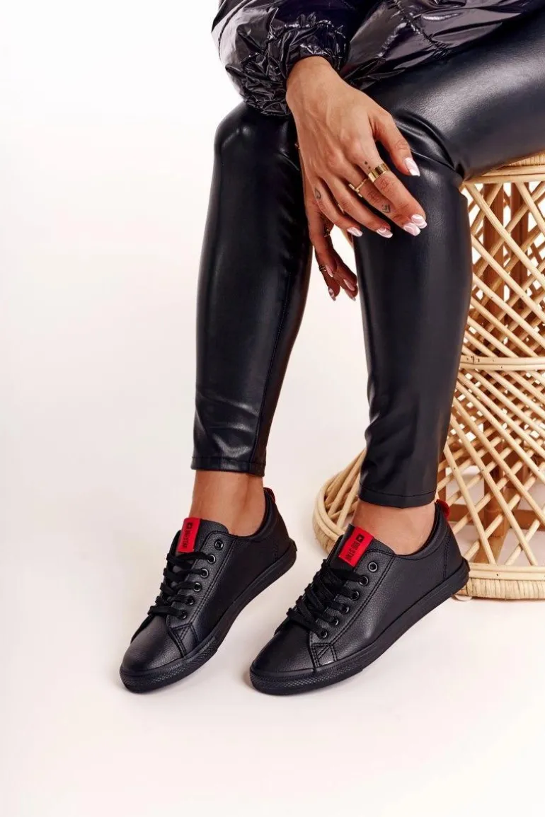 Damskie Skórzane Tenisówki Z Tasiemką BIG STAR DD274687 Czarne