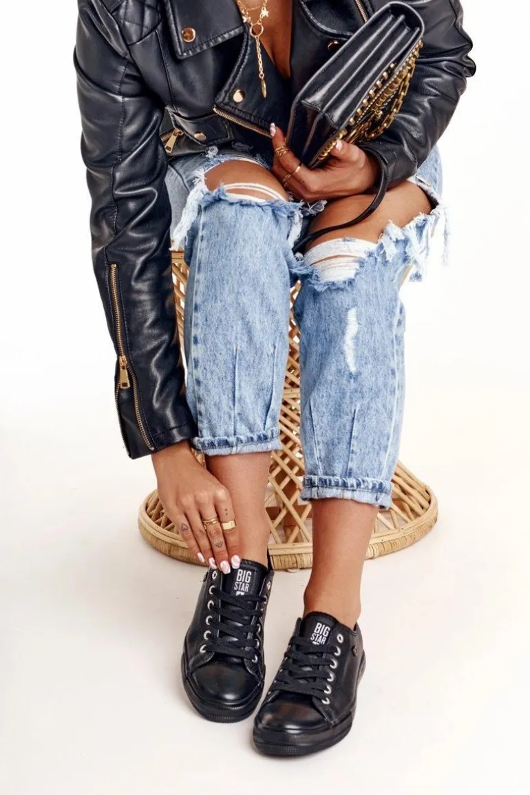 Damskie trampki polskiej marki BIG STAR. Klasyczna forma pasuje do wielu stylizacji. Buty dobrze dopasowują się do kształtu stopy, posiadają miękką, materiałową wkładkę oraz antypoślizgową podeszwę. Wykonane są z wysokiej jakości eko skóry. Koniecznie sprawdź całą naszą kolekcję butów BIG STAR. Przy wyborze rozmiaru prosimy sugerować się tabelą rozmiarów.