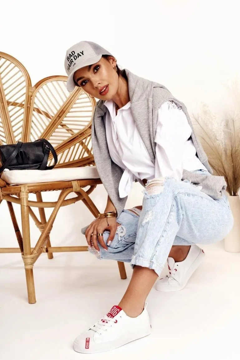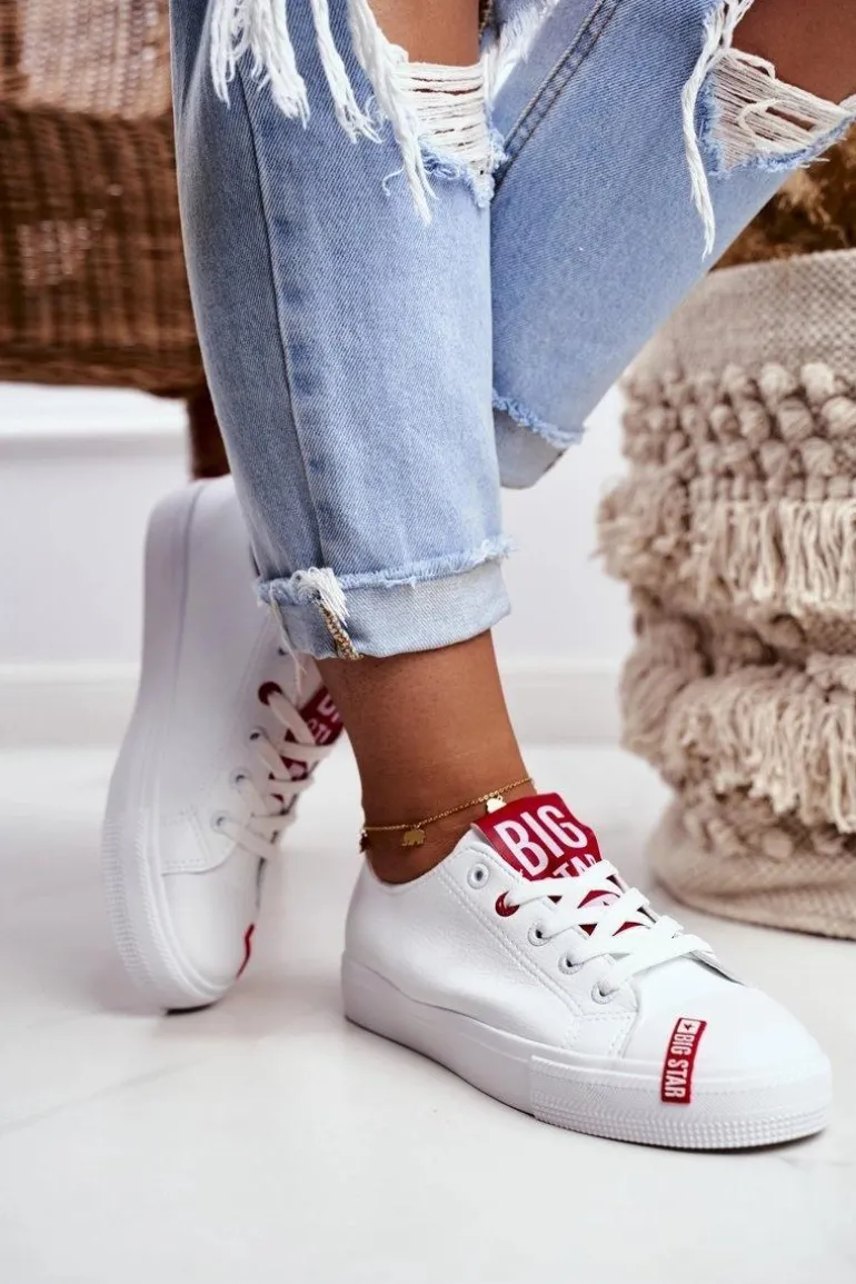 Damskie Skórzane Trampki BIG STAR EE274302 Białe