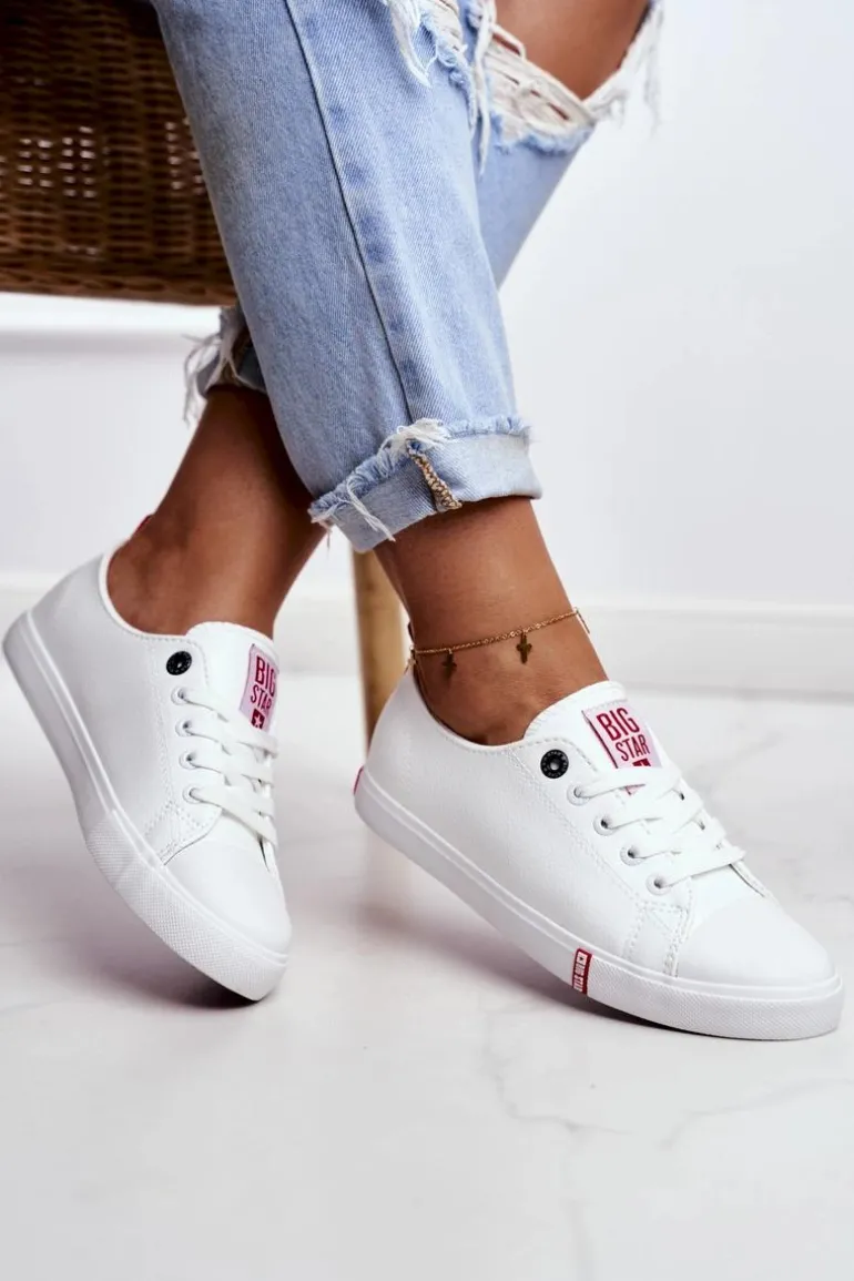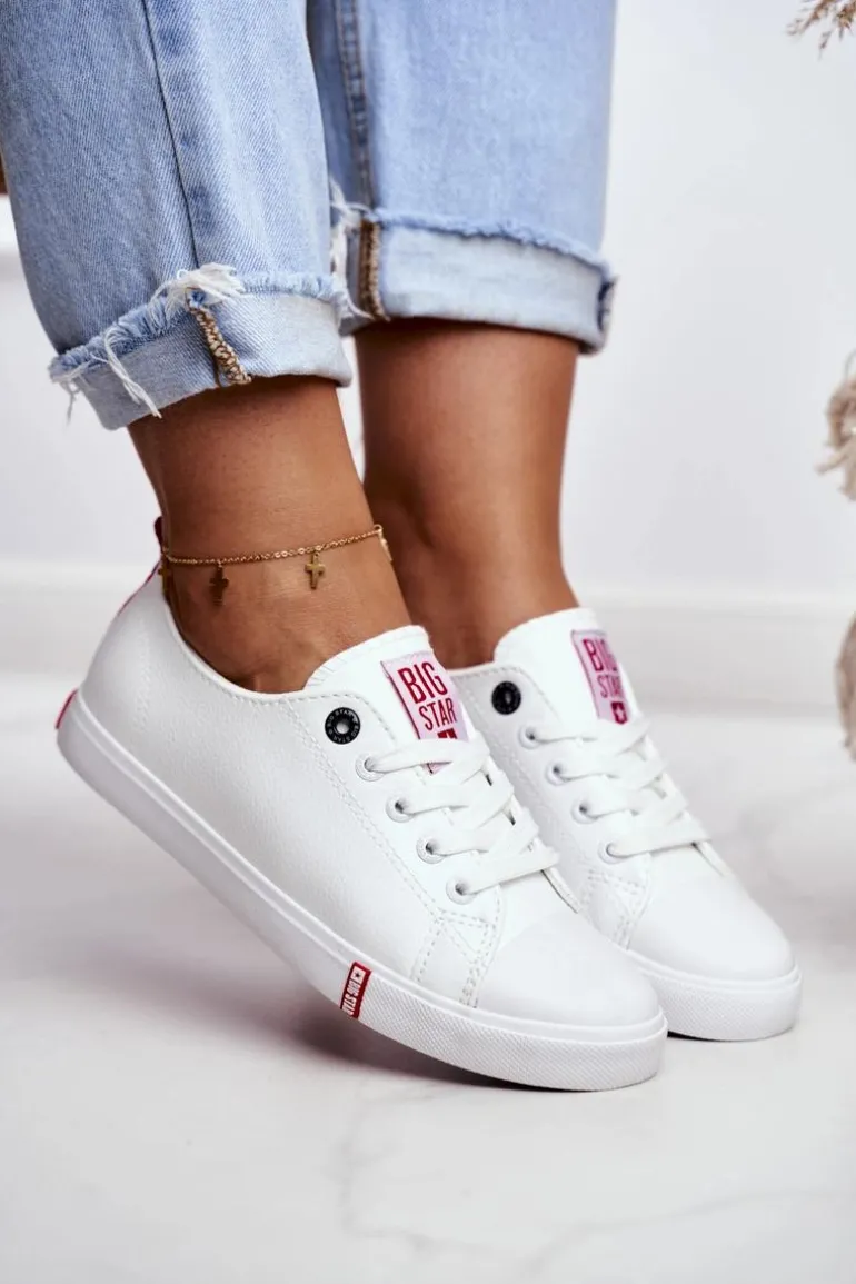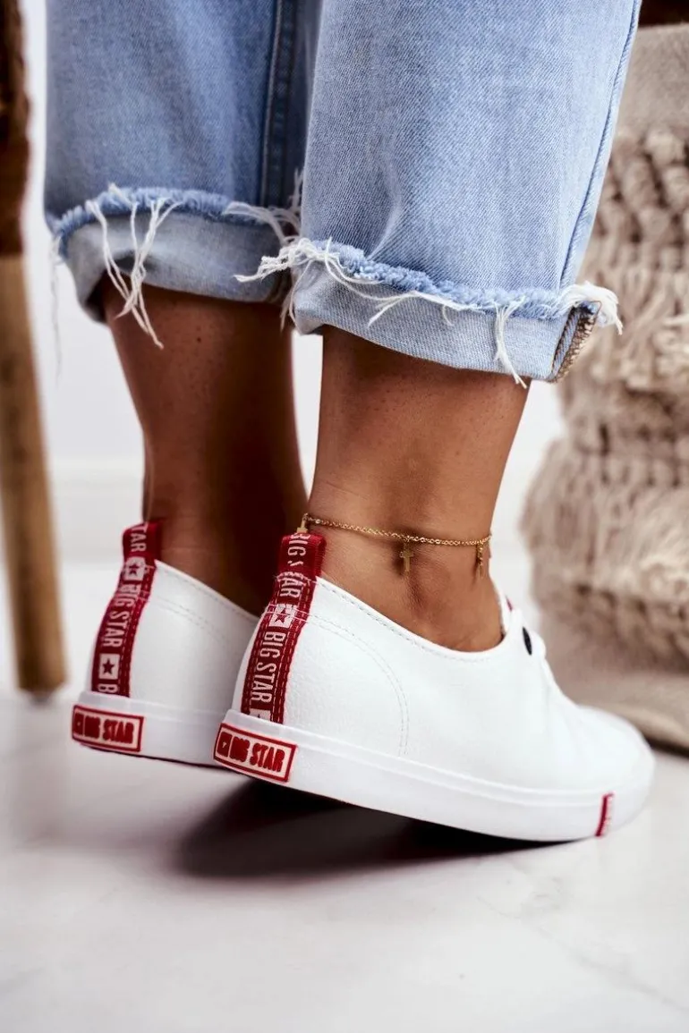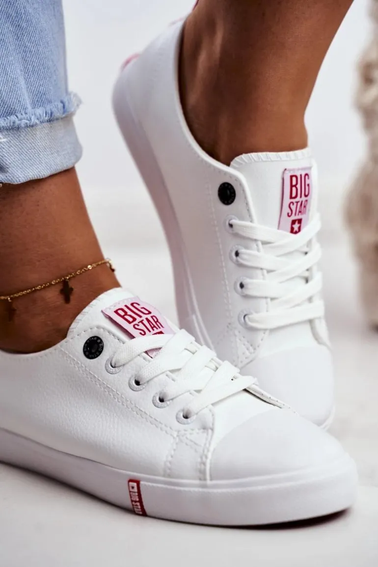 Damskie tenisówki polskiej marki BIG STAR. Klasyczna forma pasuje do wielu stylizacji. Buty dobrze dopasowują się do kształtu stopy, posiadają miękką, materiałową wkładkę. Wykonane są z wysokiej jakości eko skóry. Koniecznie sprawdź całą naszą kolekcję butów BIG STAR. Przy wyborze rozmiaru prosimy sugerować się tabelą rozmiarów.