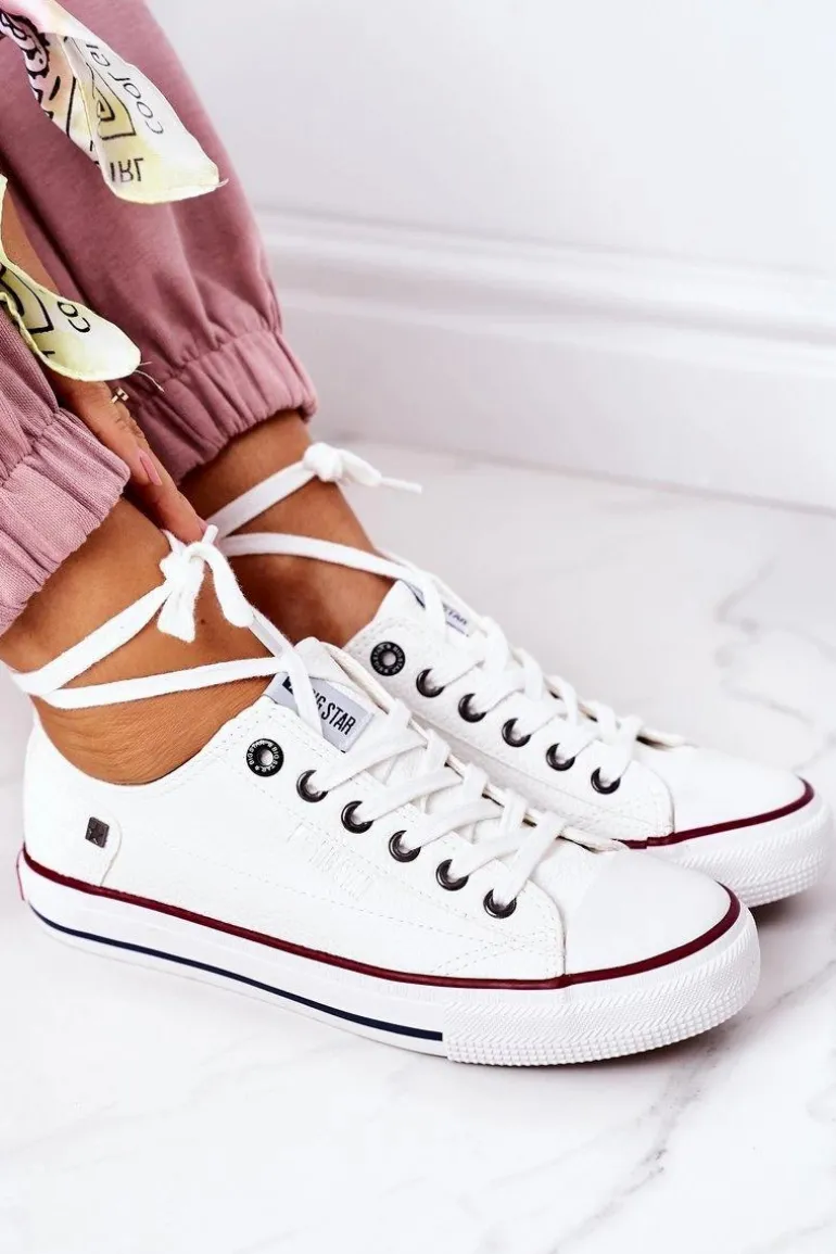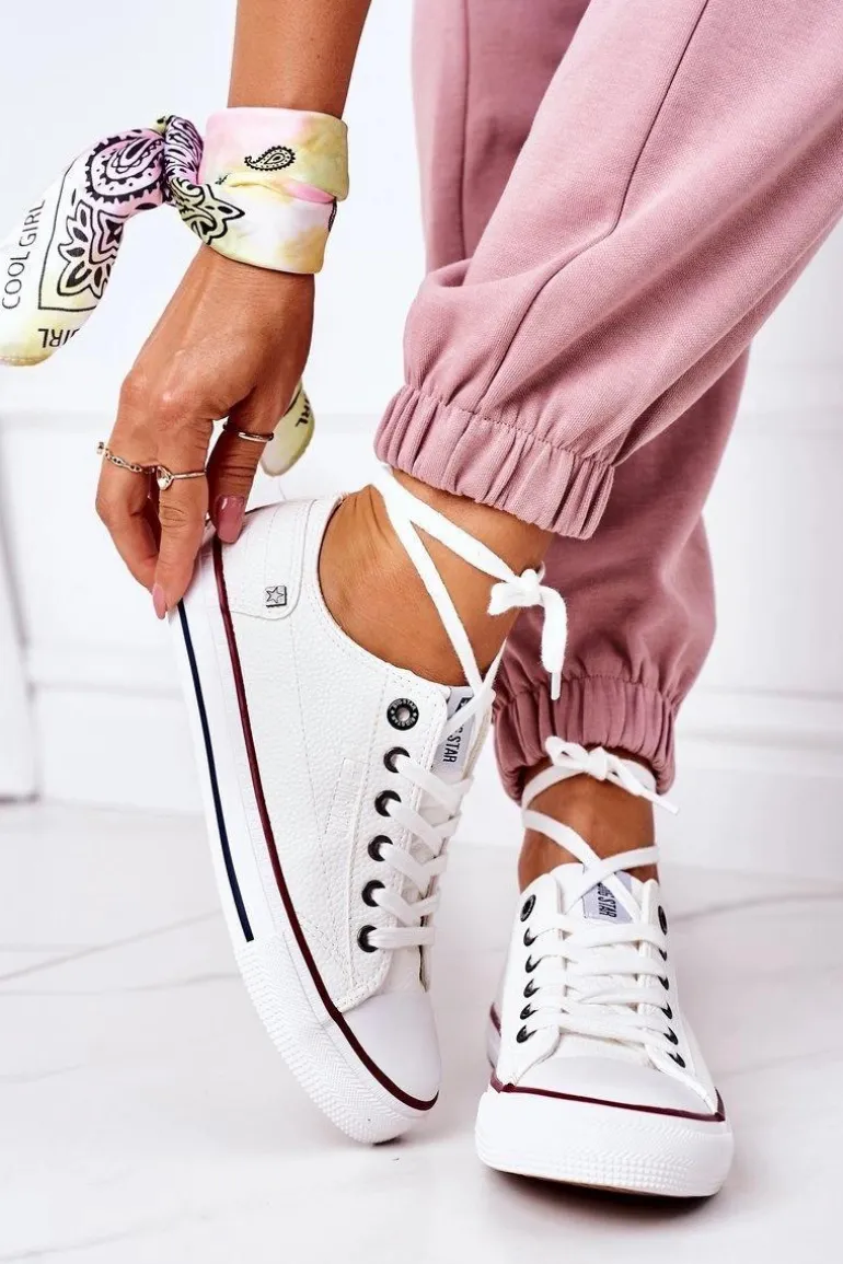 Damskie tenisówki polskiej marki BIG STAR. Klasyczna forma pasuje do wielu stylizacji. Buty dobrze dopasowują się do kształtu stopy, posiadają miękką, materiałową wkładkę. Wykonane są z wysokiej jakości eko skóry. Koniecznie sprawdź całą naszą kolekcję butów BIG STAR. Przy wyborze rozmiaru prosimy sugerować się tabelą rozmiarów.