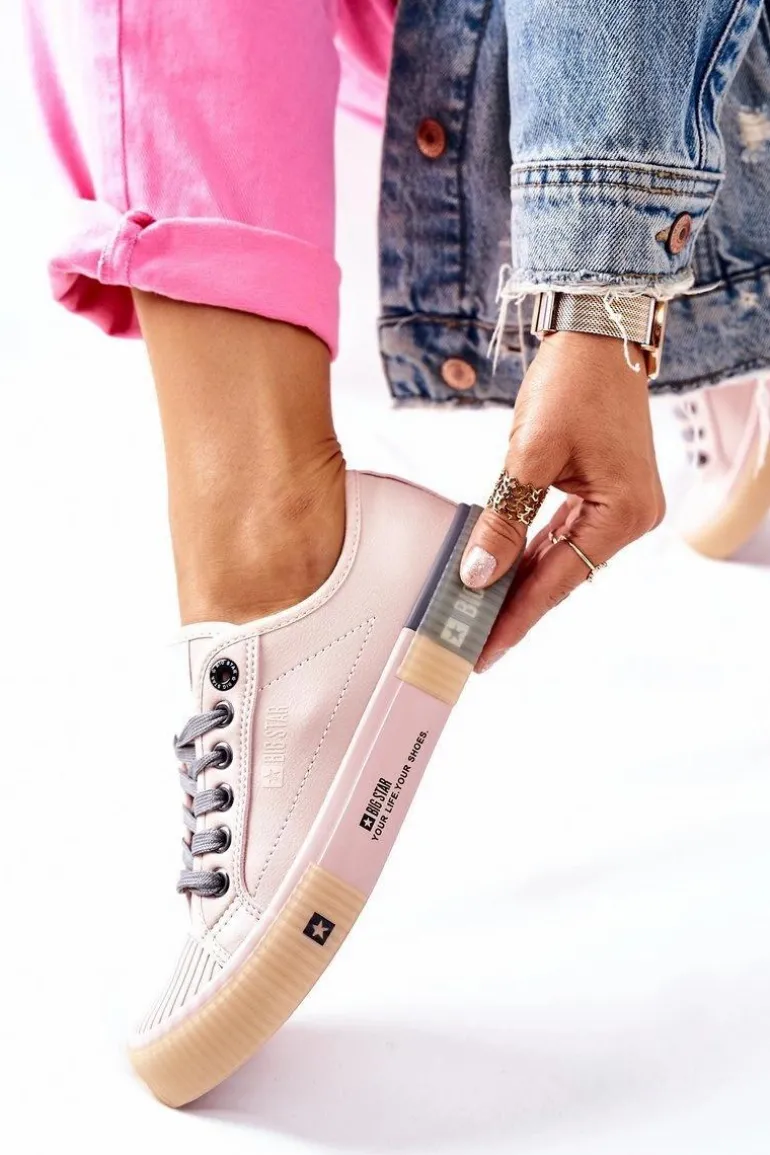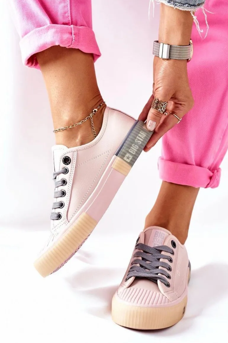 Damskie tenisówki polskiej marki BIG STAR. Klasyczna forma pasuje do wielu stylizacji. Buty dobrze dopasowują się do kształtu stopy, posiadają miękką, materiałową wkładkę. Wykonane są z wysokiej jakości eko skóry. Koniecznie sprawdź całą naszą kolekcję butów BIG STAR. Przy wyborze rozmiaru prosimy sugerować się tabelą rozmiarów.