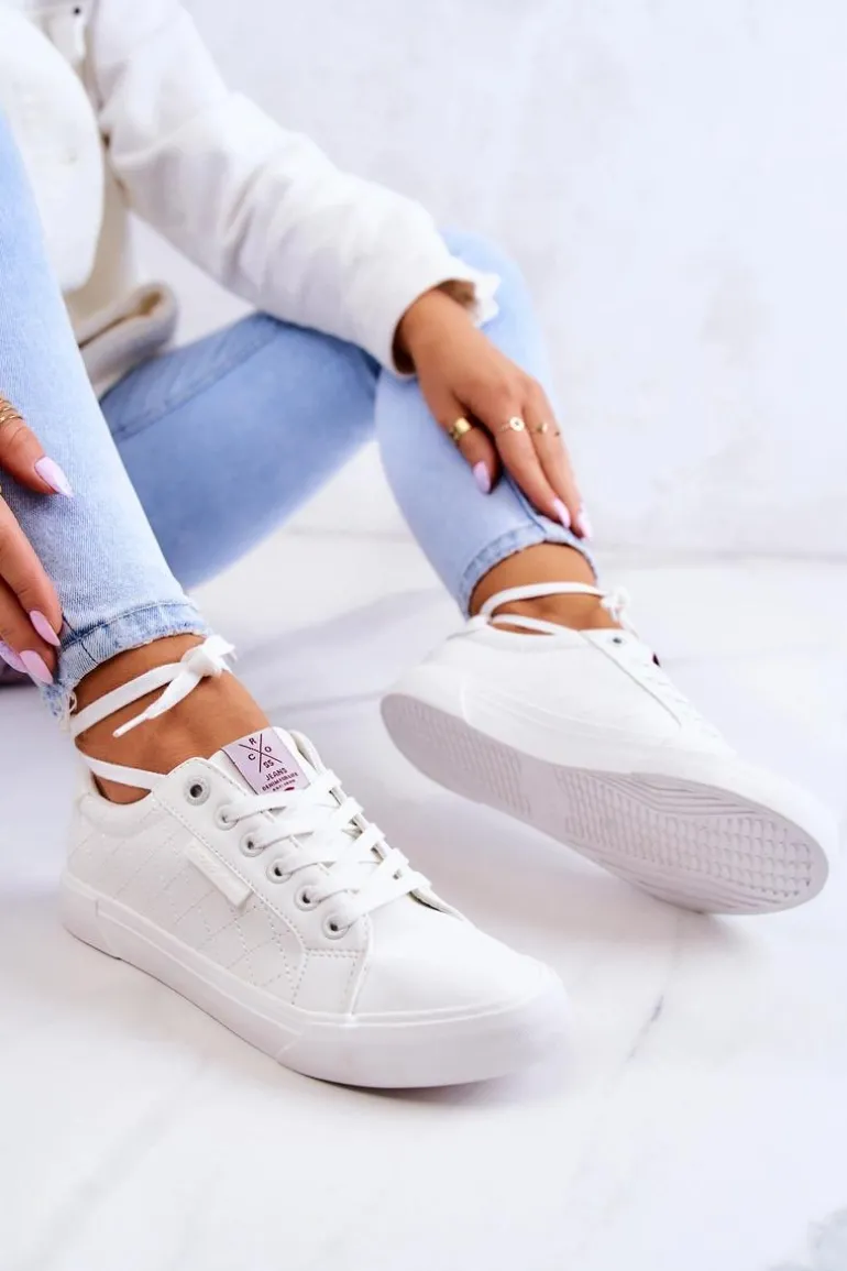 Damskie trampki marki CROSS JEANS. Klasyczna forma pasuje do wielu stylizacji. Buty dobrze dopasowują się do kształtu stopy, posiadają miękką, materiałową wkładkę. Wykonane są z wysokiej jakości przeszywanej eko skóry. Antypoślizgowa podeszwa. Koniecznie sprawdź całą naszą kolekcję butów marki CROSS JEANS. Przy wyborze rozmiaru prosimy sugerować się tabelą rozmiarów.