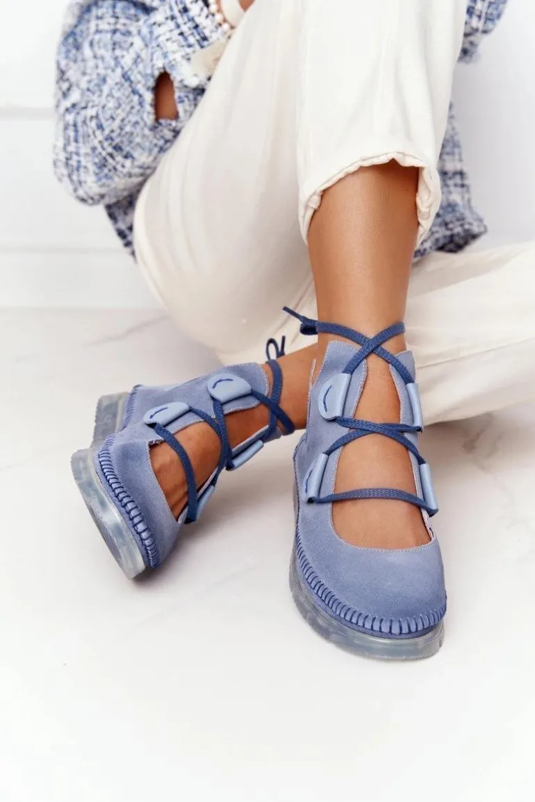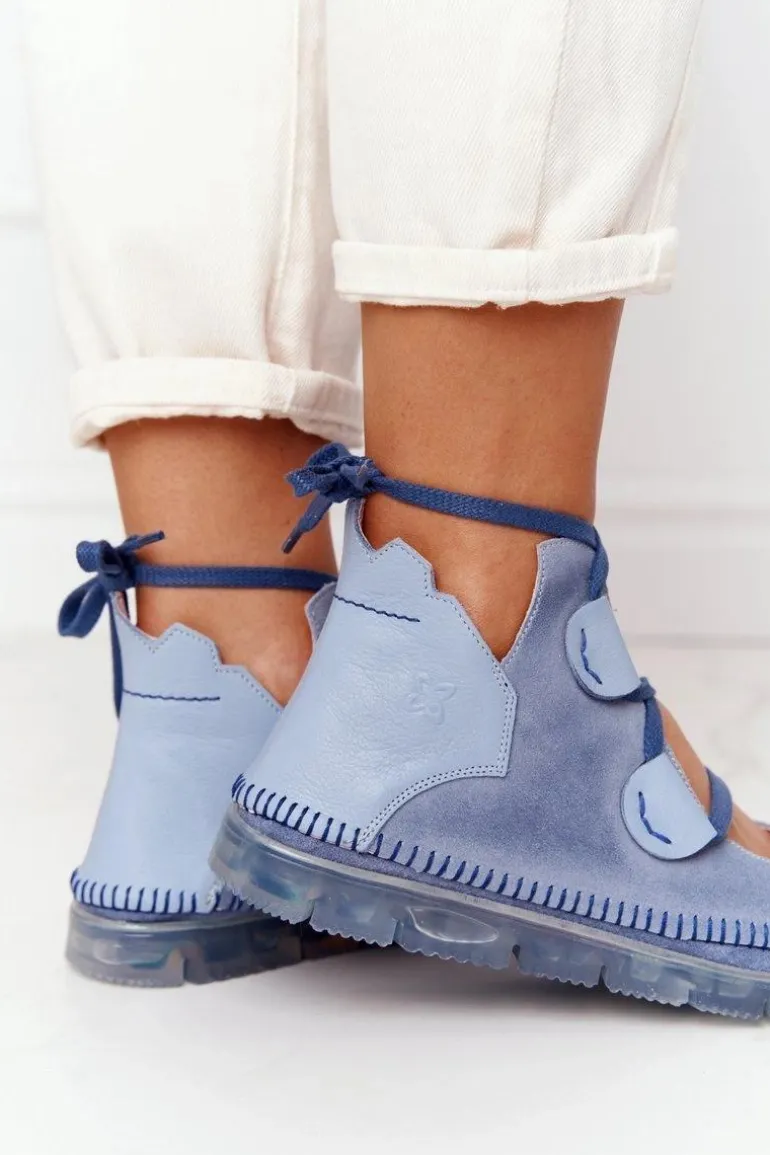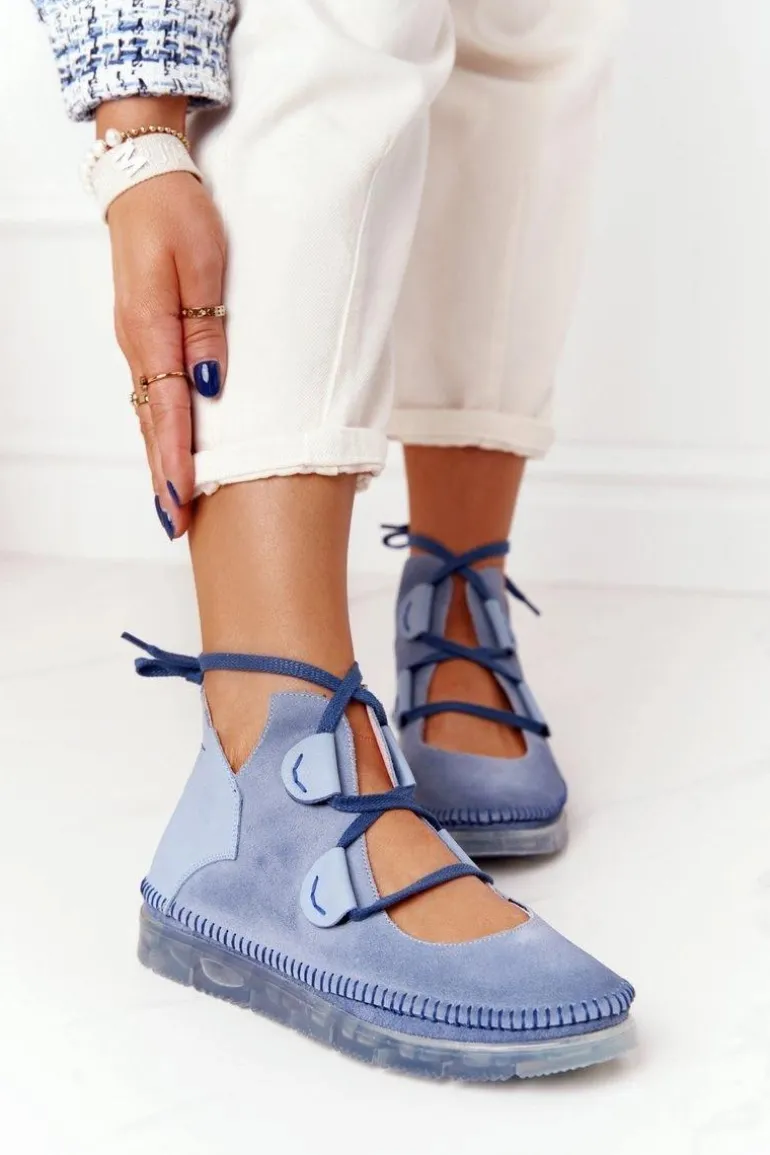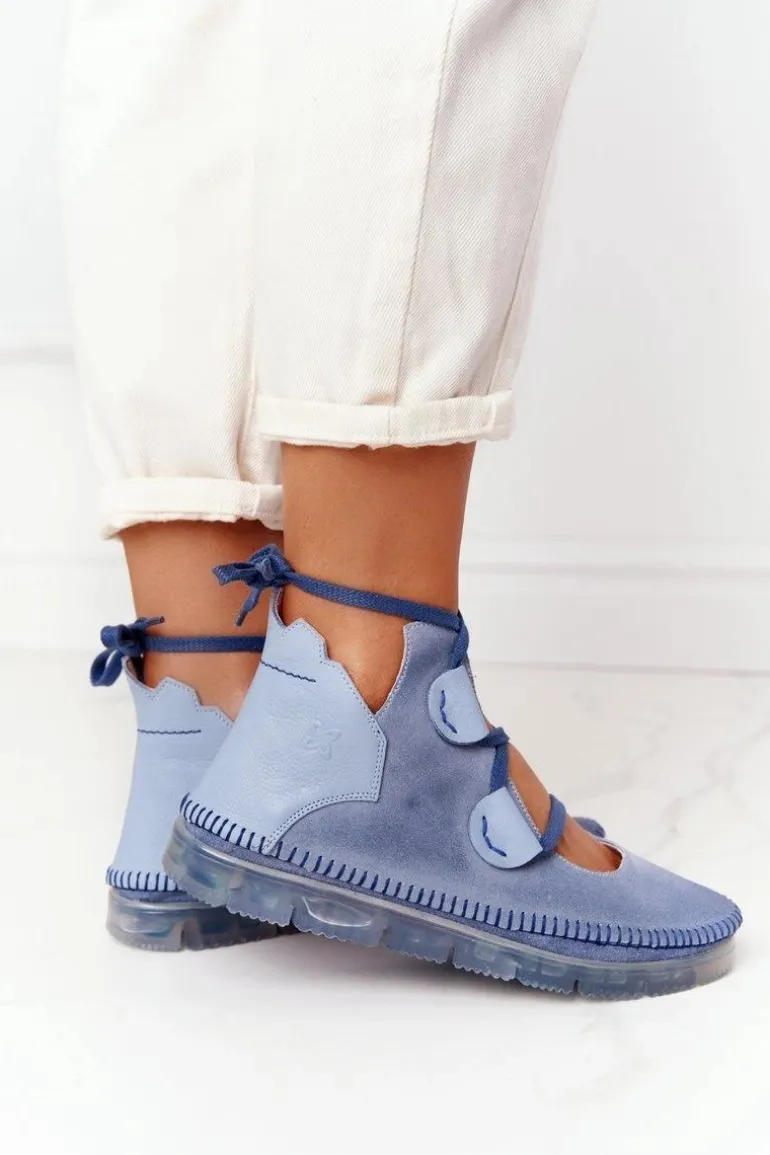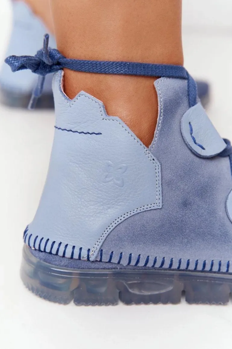 Damskie Skórzane Trzewiki Maciejka Niebieskie 04457-06