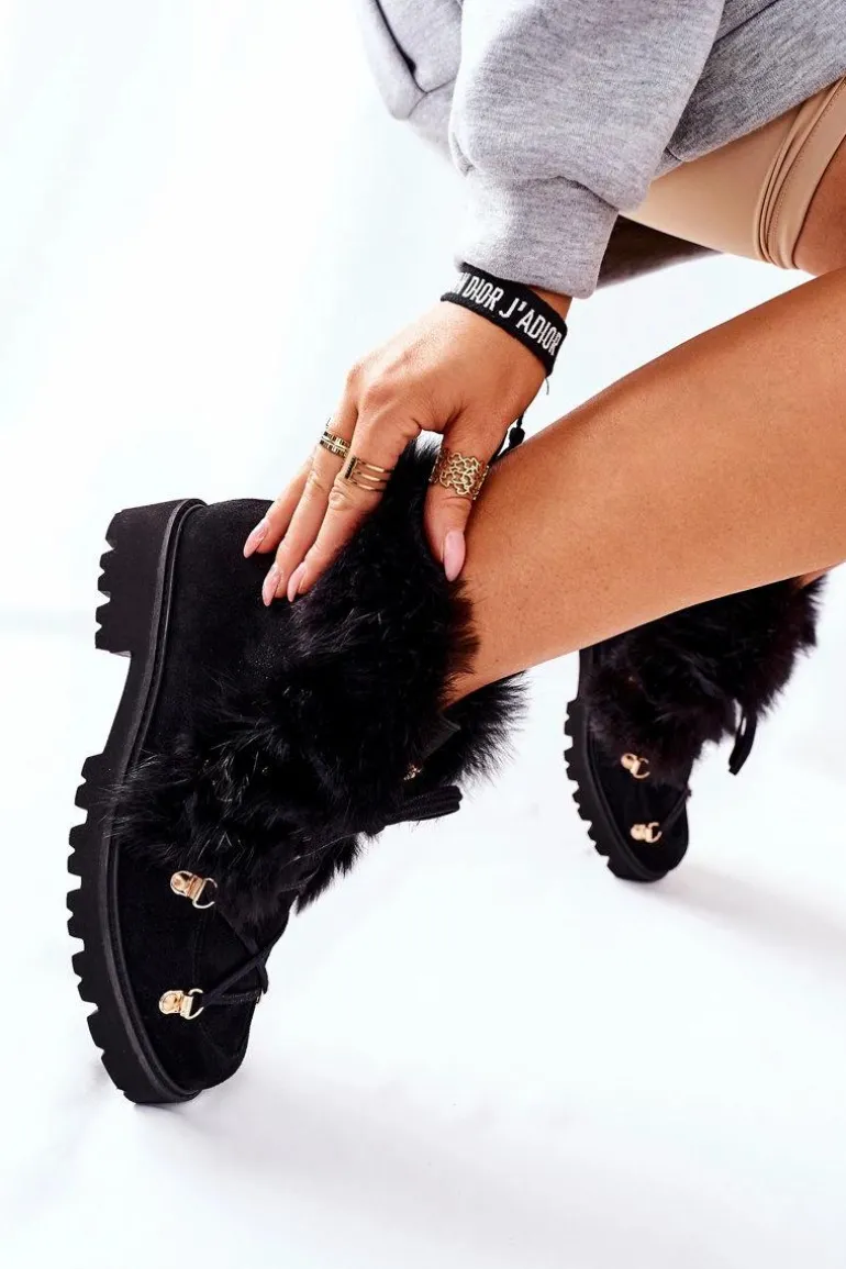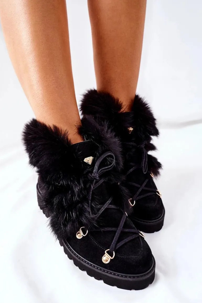 Przepiękne i modne botki marki Nicole. Buty w całości zostały wykonane z naturalnej welurowej skóry. Wnętrze botków ocieplone kocem obuwniczym, gwarantującym ciepło nawet w najmroźniejsze dni. Cholewka zdobiona pięknym sztucznym futerkiem. Fason klasycznie sznurowany, z pięknymi złotymi oczkami. Przy wyborze rozmiaru prosimy sugerować się tabelą rozmiarów.