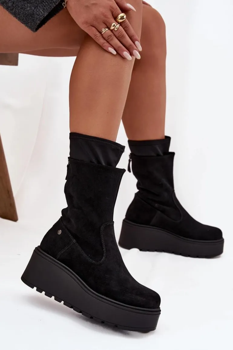 Botki damskie marki Maciejka wykonane są z naturalnej skóry zamszowej. Osadzone na masywnej platformie. Model w suwany. Z tyłu cholewki suwak. Noski zaokrąglone. Miękka wkładka zapewni komfortowe użytkowanie obuwia. Ocieplane wyłącznie na wysokości stopy. Ten modny model wykorzystasz do wielu jesiennych stylizacji! Przy wyborze rozmiaru prosimy sugerować się tabelą rozmiarów.
