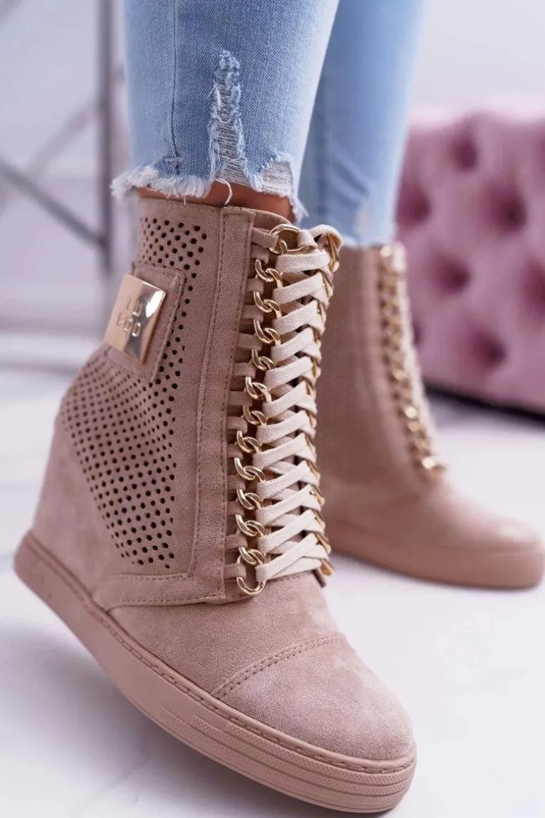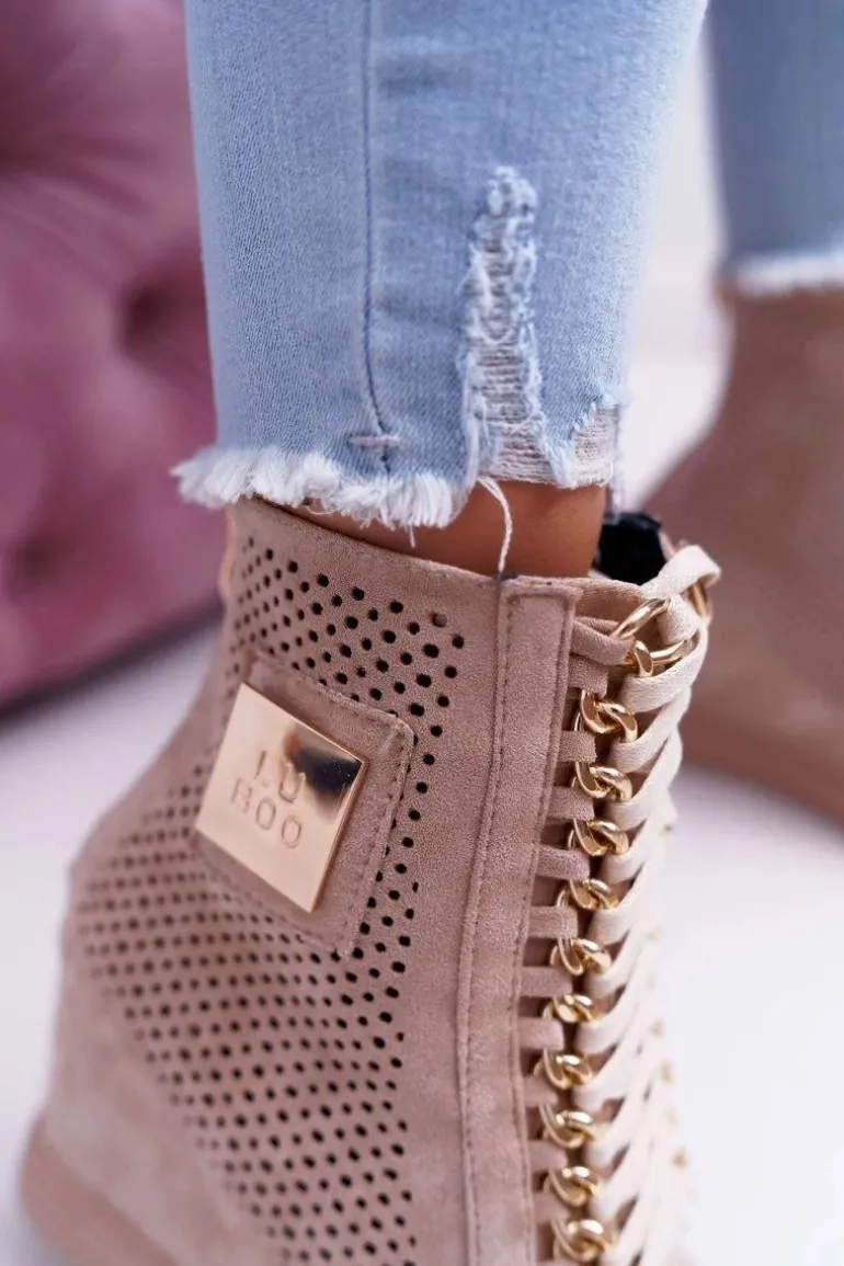 Damskie Sneakersy Lu Boo Ażurowe Zamszowe Beżowe Clamma