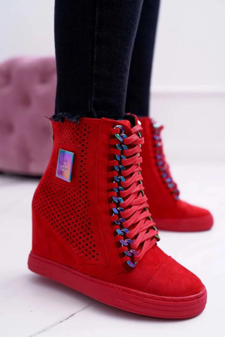 Damskie Sneakersy Lu Boo Ażurowe Zamszowe Czerwone Clamma