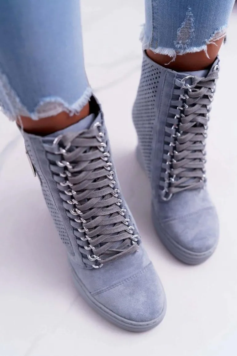 Damskie Sneakersy Lu Boo Ażurowe Zamszowe Niebieskie Clamma