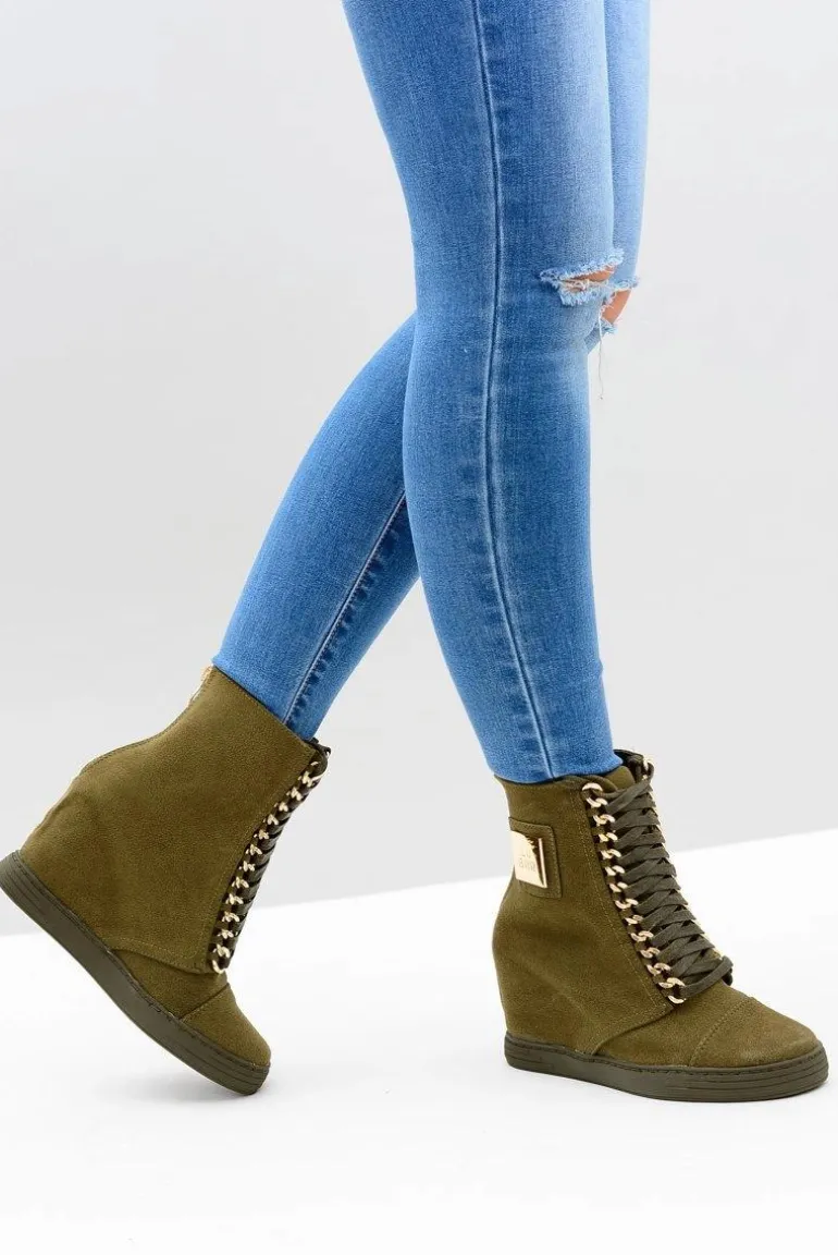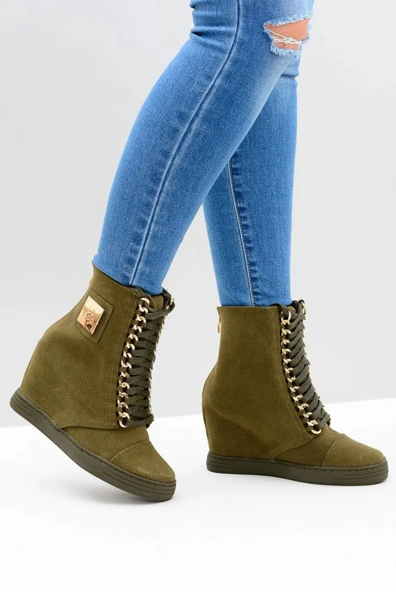 Damskie Sneakersy Lu Boo Z Łańcuchami Zamszowe Oliwkowe Monica