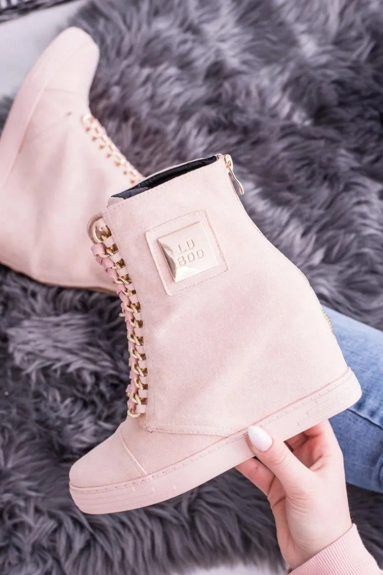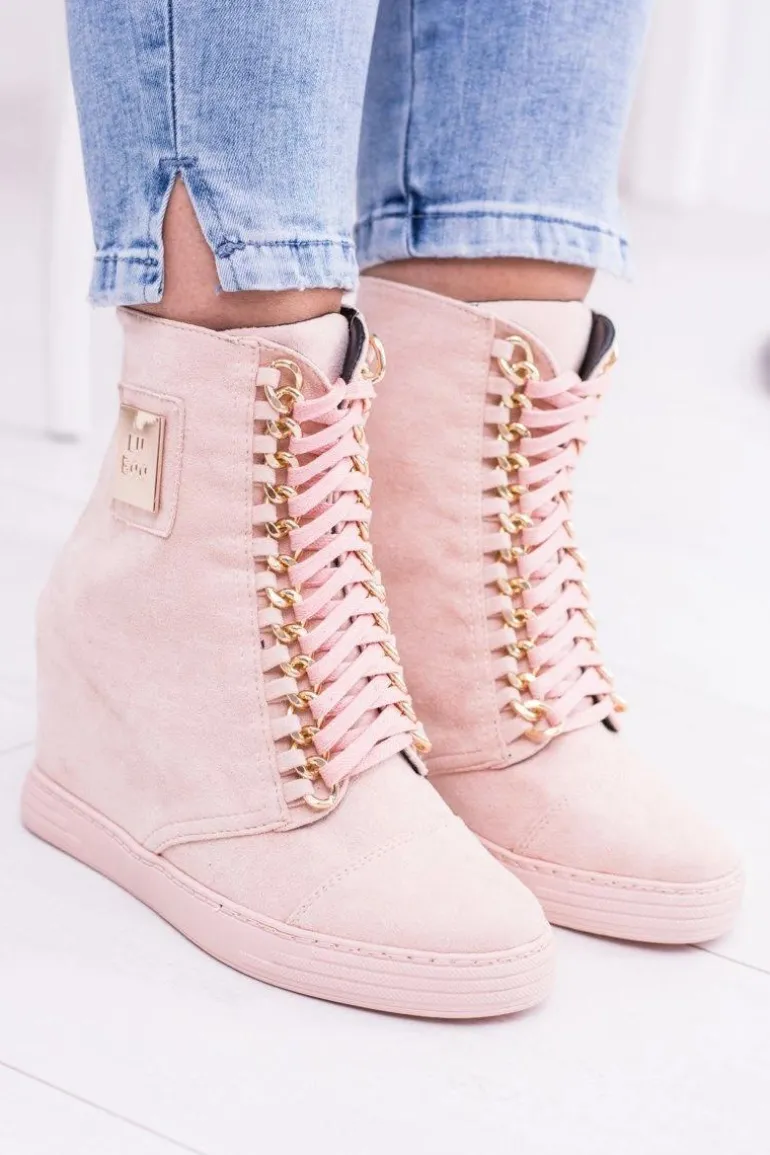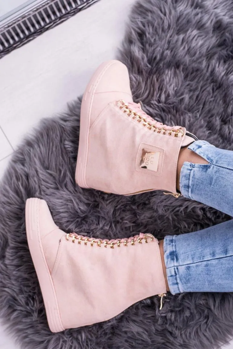 Damskie Sneakersy Lu Boo Z Łańcuchami Zamszowe Różowe Monica