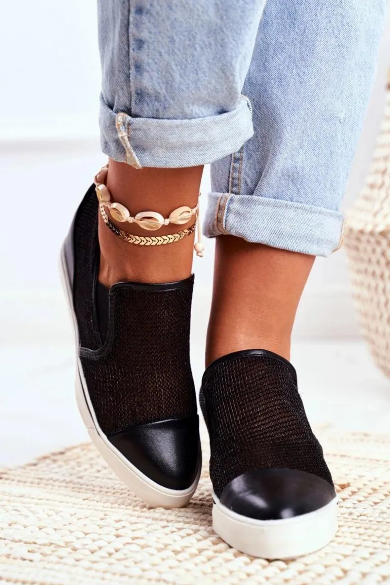 Damskie Sneakersy Lu Boo z Siateczką Czarne Morgono