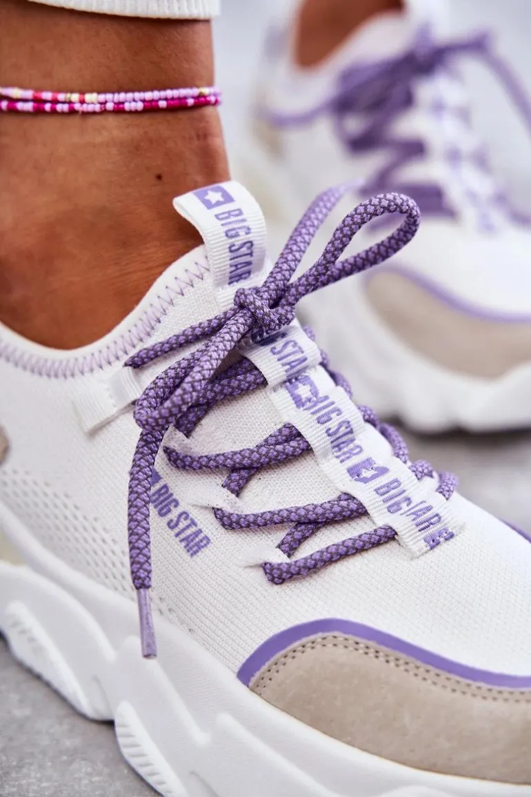 Modne sneakersy marki Big Star zostały wykonane z przewiewnej, a zarazem elastycznej tkaniny. Dodatkowo posiadają wstawki z eko skóry oraz eko zamszu. Model wsuwany ze sznurowaniem. Wkładka Memory Foam System zapamiętuje kształt stopy, zapewnia doskonałe dopasowanie, absorbuje wstrząsy, jest odporna na odkształcenia oraz pozwala na odparowanie wilgoci i regulację temperatury. Buty te zostały osadzone na masywnej platformie. Posiadają usztywniany zapiętek. Przy wyborze rozmiaru prosimy sugerować się tabelą rozmiarów.