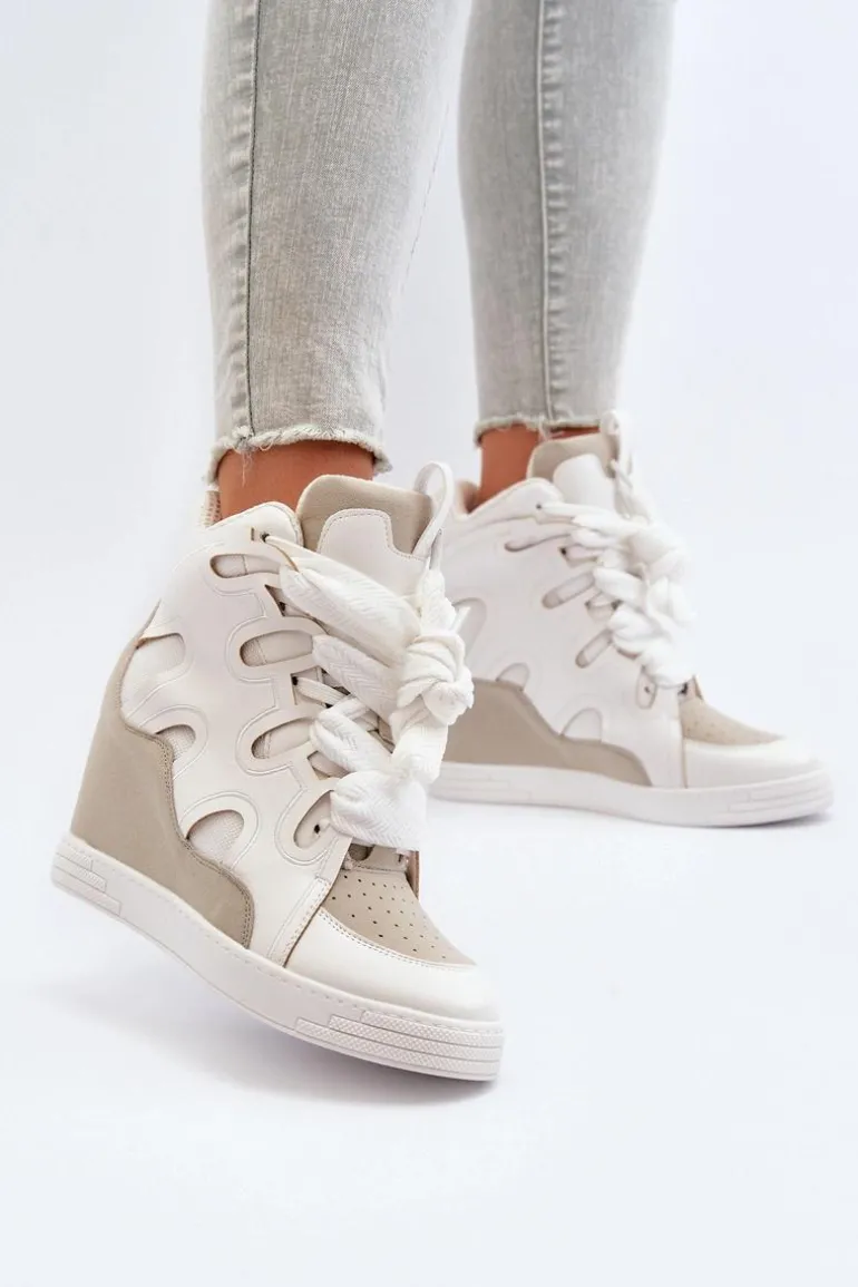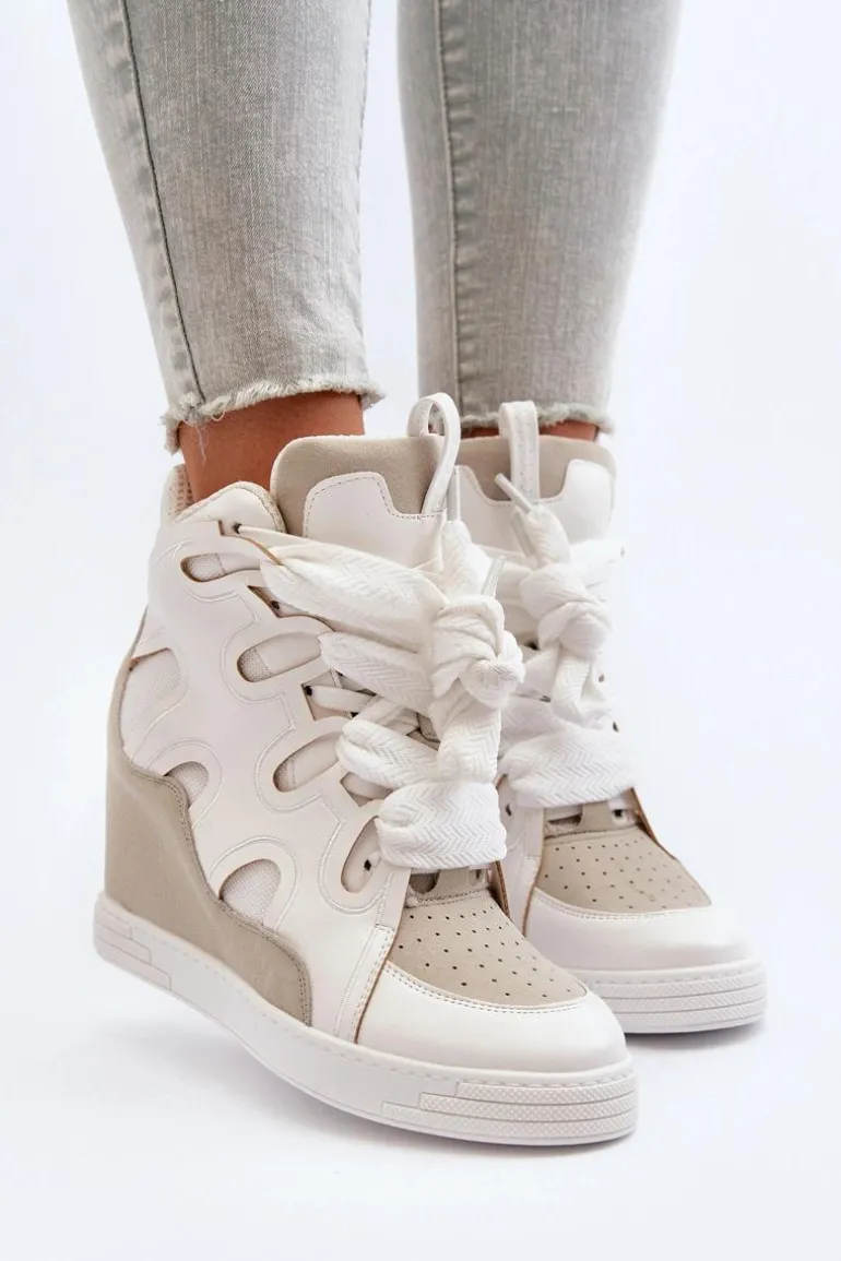 Sneakersy damskie wykonane z połączenia eko skóry i materiału tekstylnego. Osadzone na ukrytym koturnie, który delikatnie uniesie Twoją sylwetkę. Model ten posiada podwójne sznurowanie. Koniecznie powinnaś mieć ten fason w swojej garderobie, jeżeli cenisz sobie modny design! Przy wyborze rozmiaru prosimy kierować tabelą rozmiarów.