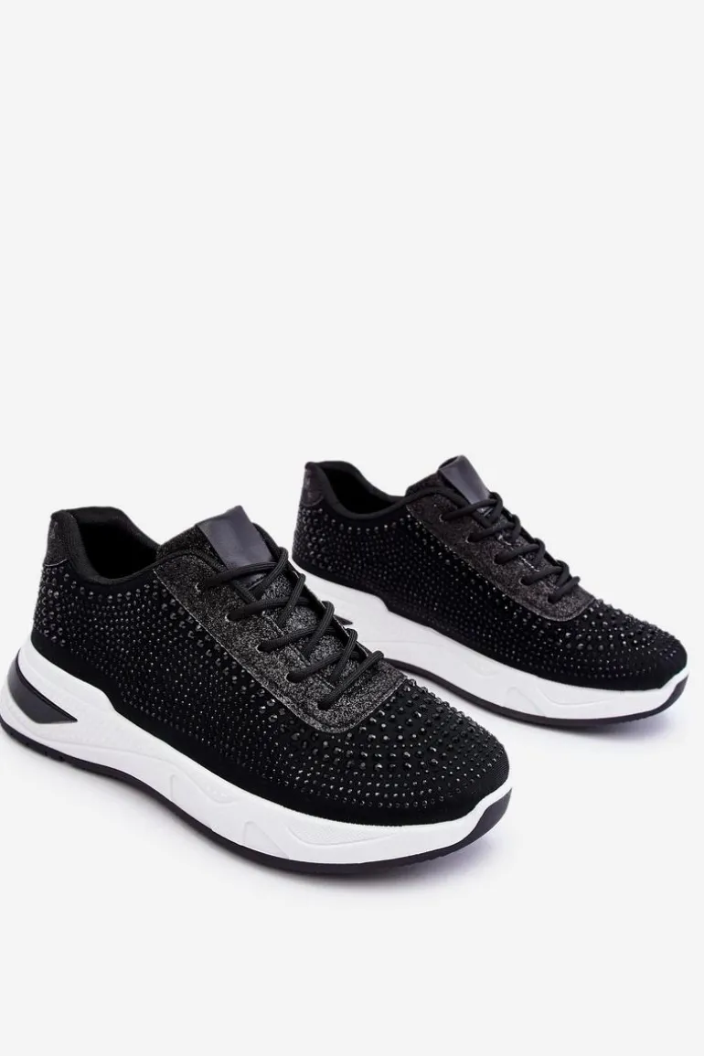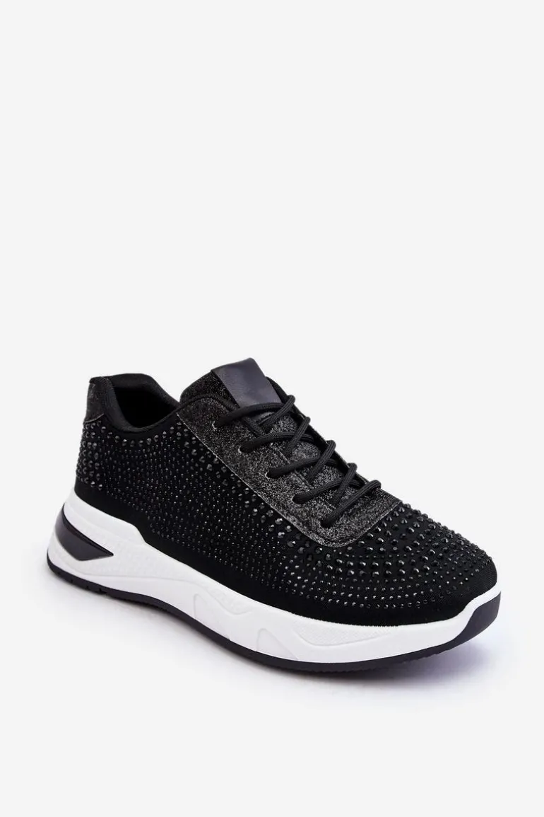 Klasyczne, damskie buty sportowe zostały wykonane z materiału tekstylnego. Dodatkowo posiadają zdobienia w postaci dżetów imitujących cyrkonie. Zostały osadzone na platformie. Model ten posiada klasyczne sznurowanie. Miękka wkładka wykonana z materiału zapewni wygodę podczas użytkowania. Koniecznie powinnaś je mieć! Przy wyborze rozmiaru prosimy kierować się tabelą rozmiarów.