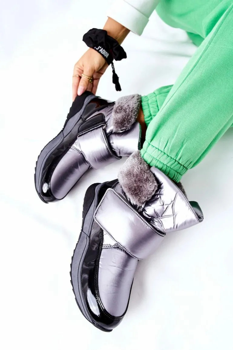 Buty wewnątrz są niesamowicie miłe w dotyku dzięki zastosowaniu ocieplenia w postaci futerka. Zewnętrzna część buta została wykonana z materiału tekstylnego. Buty zapinane na rzep. W tych śniegowcach żadna pogoda nie będzie Ci straszna! Przy wyborze rozmiaru prosimy kierować tabelą rozmiarów.