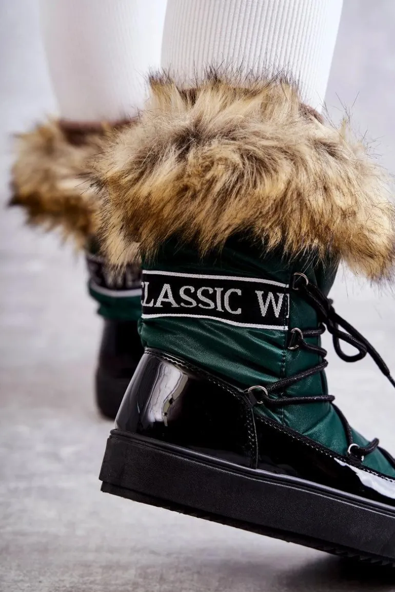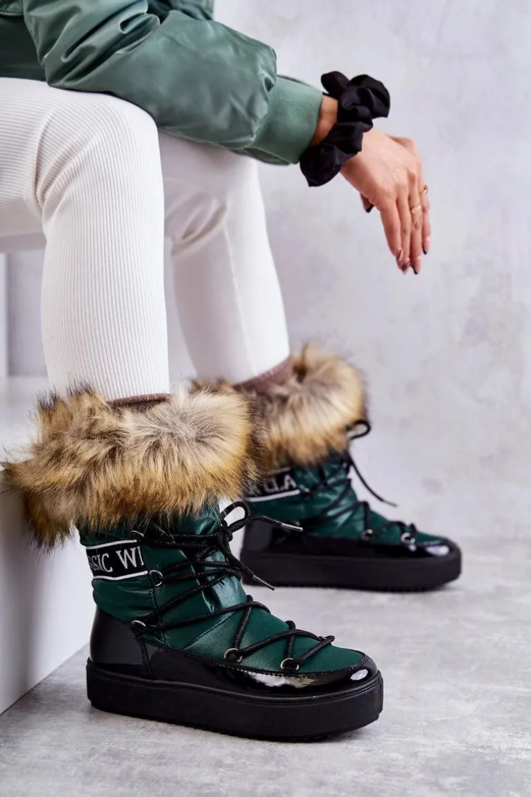 Modne śniegowce zostały wykonane z materiału odpornego na zimno i wiatr. Cholewka zakończona sztucznym futerkiem. Model klasycznie sznurowany. Śniegowce zostały osadzone na masywnej platformie. Posiadają w środku ocieplenie w postaci grubego futerka. Dekorowane tasiemką z nadrukiem. Niezwykle ciepłe, a zarazem stylowe. Powinnaś je mieć! Przy wyborze rozmiaru prosimy sugerować się tabelą rozmiarów.
