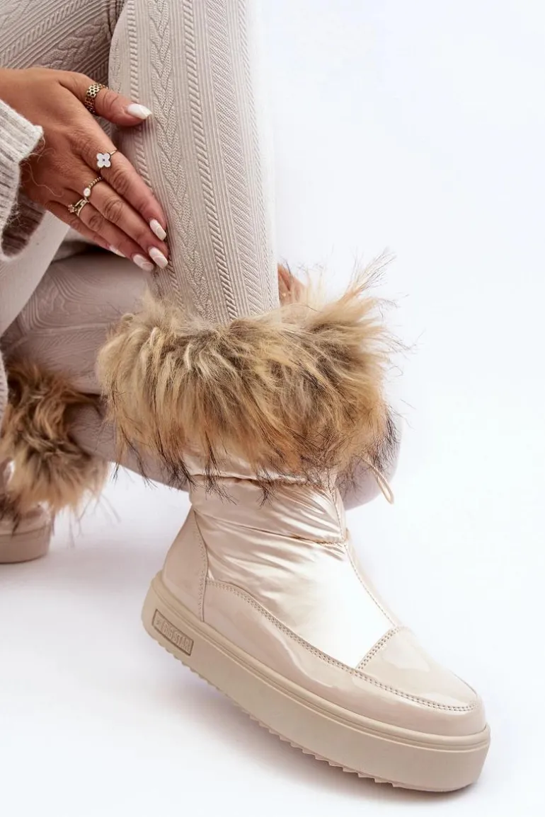Śniegowce damskie marki Big Star zostały wykonane z wysokiej jakości materiałów odpornych na mróz i wiatr. Osadzone na platformie z gumowego tworzywa. Wnętrze ocieplone futerkiem. Model wsuwany ze ściągaczem.Przy wyborze rozmiaru prosimy sugerować się tabelą rozmiarów.