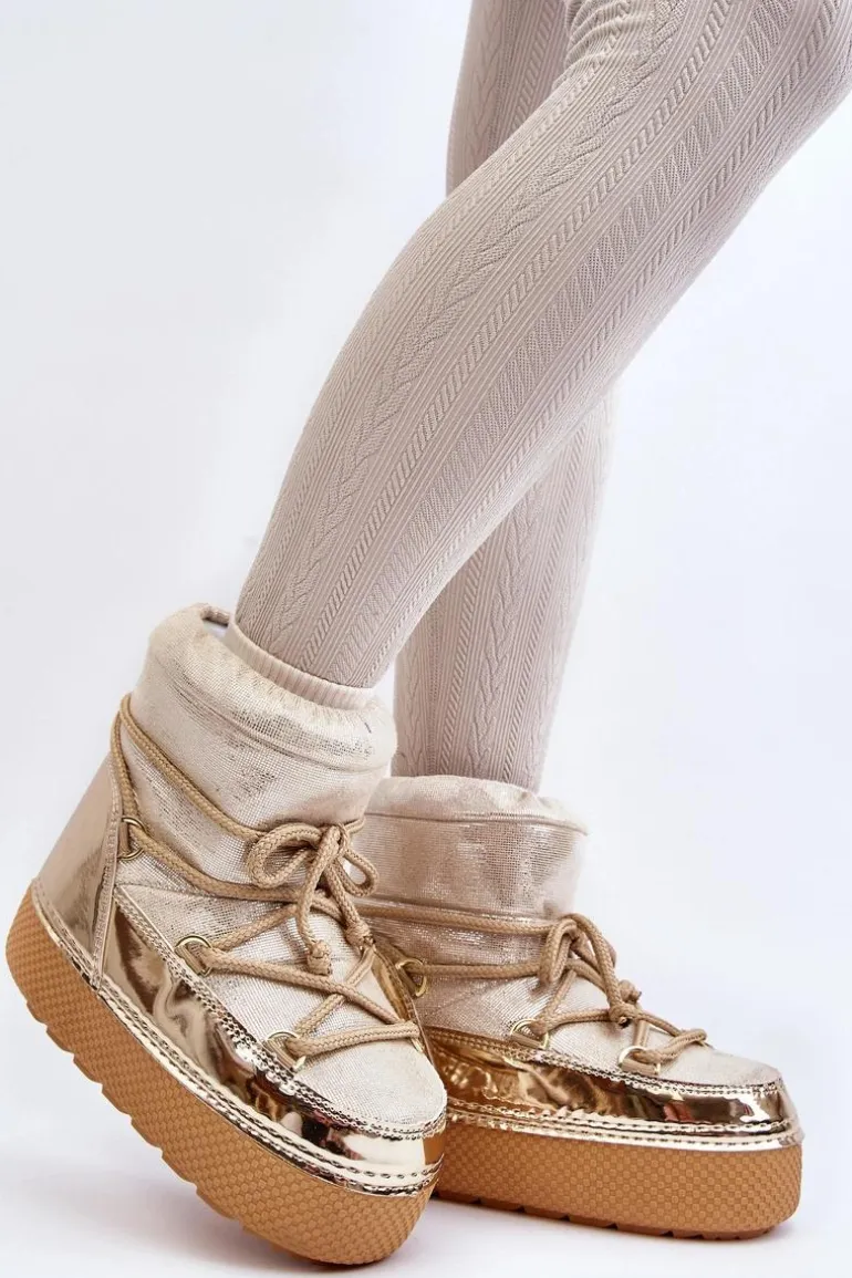 Te niezwykle przytulne i komfortowe damskie śniegowce zostały starannie stworzone z materiałów, które skutecznie chronią przed zimnem. Bezproblemowe wsuwanie tych śniegowców ułatwia szybką i wygodną zmianę obuwia, a dodatkowe sznurowanie z przodu gwarantuje idealne dopasowanie do Twojej stopy. Model ten, osadzony jest na masywnej platformie, która zapewnia stabilność i pewność kroków, nawet na śliskiej nawierzchni. Wnętrze śniegowców zostało starannie wyłożone miękką pianką oraz delikatnym materiałem. Przy wyborze rozmiaru prosimy sugerować się tabelą rozmiarów.