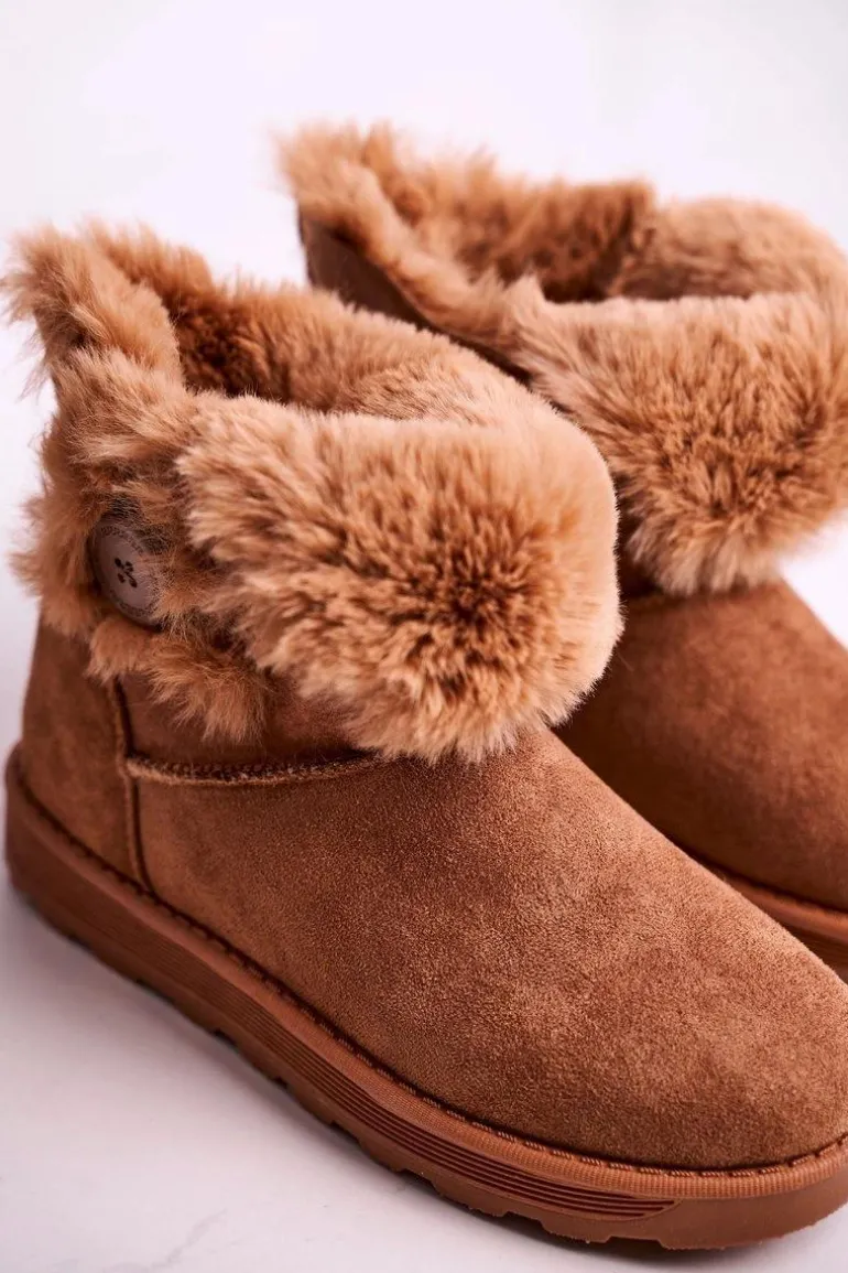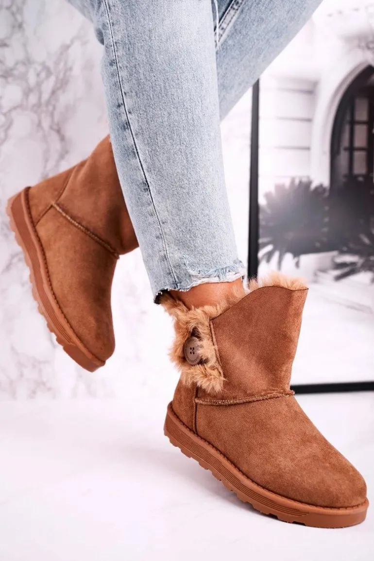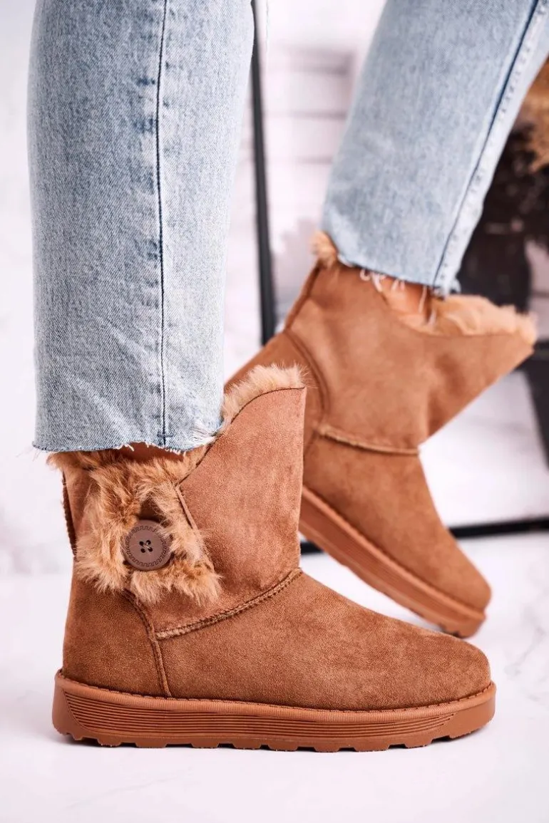 Damskie Śniegowce Zamszowe z Futerkiem Brązowe Button