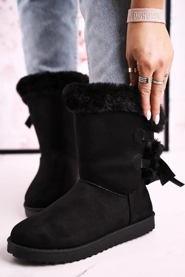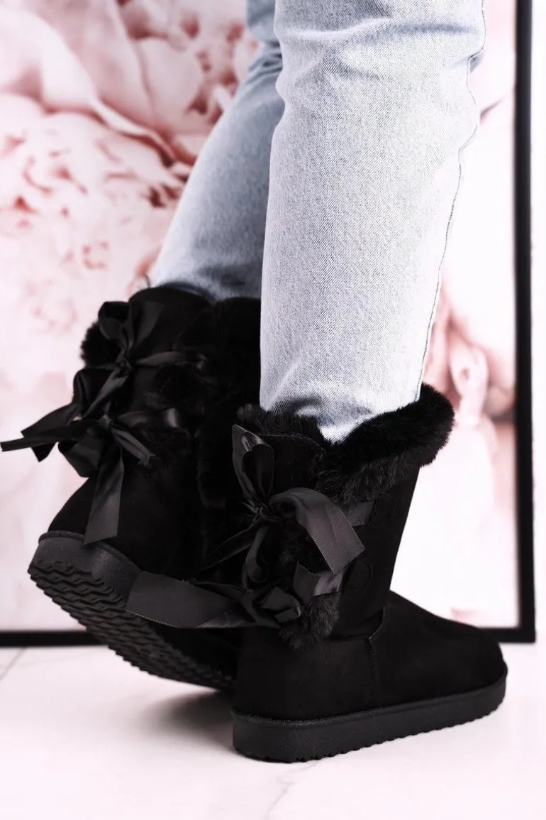 Damskie Śniegowce Ze Wstążką Ocieplone Futerkiem Czarne Kaylee