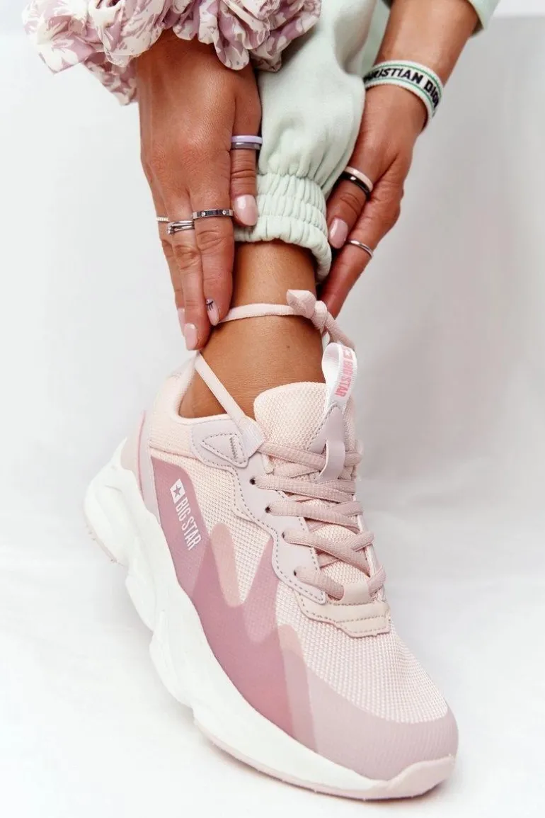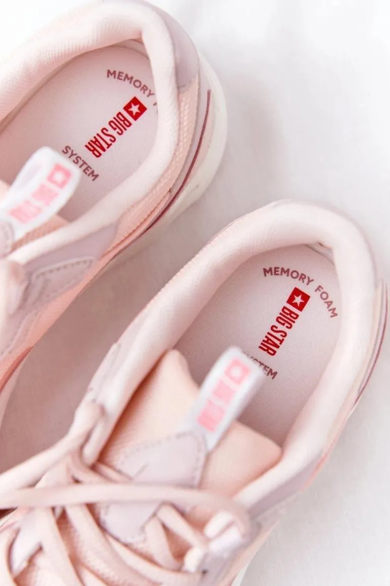 Damskie sportowe buty od polskiej marki Big Star. Cholewka wykonana jest z połączenia przewiewnej tkaniny oraz eko skóry. Buty posiadają antypoślizgową podeszwę oraz wyjątkową wkładkę MEMORY FOAM SYSTEM. Wkładka zapamiętuje kształt stopy, zapewnia doskonałe dopasowanie, absorbuje wstrząsy, jest odporna na odkształcenia oraz pozwala na odparowywanie wilgoci i regulacje temperatury. Koniecznie sprawdź całą naszą kolekcję butów BIG STAR. Przy wyborze rozmiaru prosimy sugerować się tabelą rozmiarów.