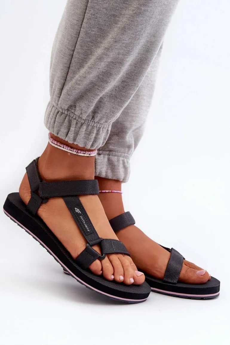 Sportowe sandały damskie marki 4F. Zapięcie paskami na rzep gwarantuje idealne dopasowanie do stopy. Podeszwa wykonana z połączenia pianki EVA z gumą zapewnia komfort i optymalną przyczepność do podłoża. Idealne zarówno na letnie spacery, jak i bardziej aktywne aktywności na świeżym powietrzu. Przy wyborze rozmiaru prosimy sugerować się tabelą rozmiarów.