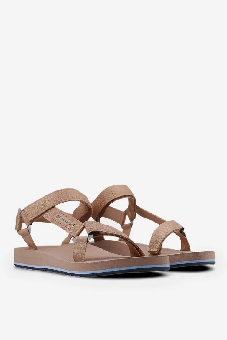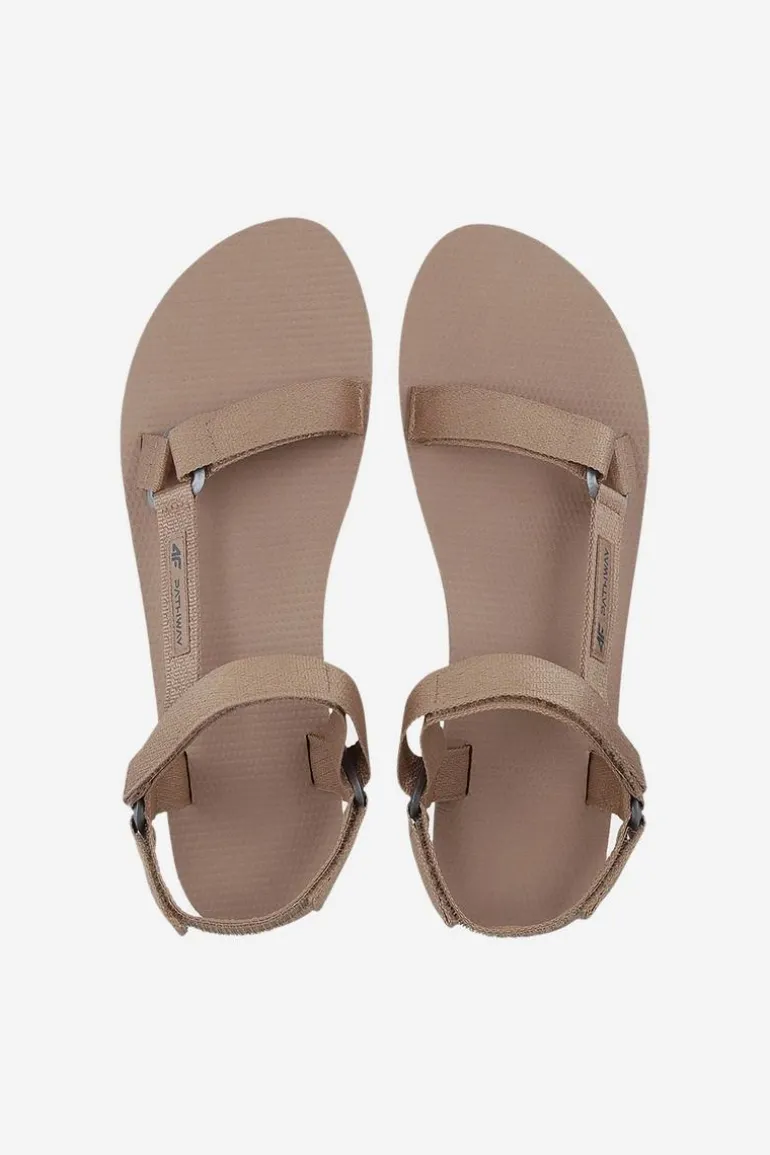 Sportowe sandały damskie marki 4F. Potrójne zapięcie paskami na rzep gwarantuje idealne dopasowanie do stopy. Podeszwa wykonana z połączenia pianki EVA z gumą zapewnia komfort i optymalną przyczepność do podłoża. Idealne zarówno na letnie spacery, jak i bardziej aktywne aktywności na świeżym powietrzu. Przy wyborze rozmiaru prosimy sugerować się tabelą rozmiarów.