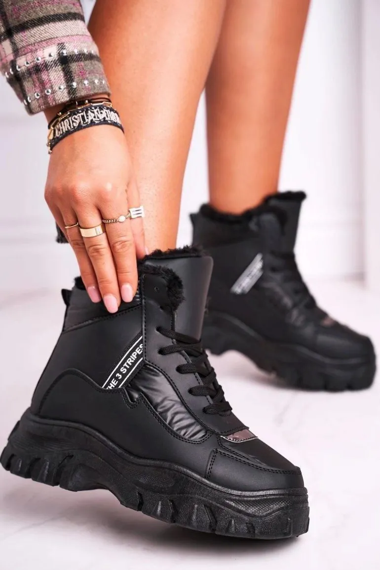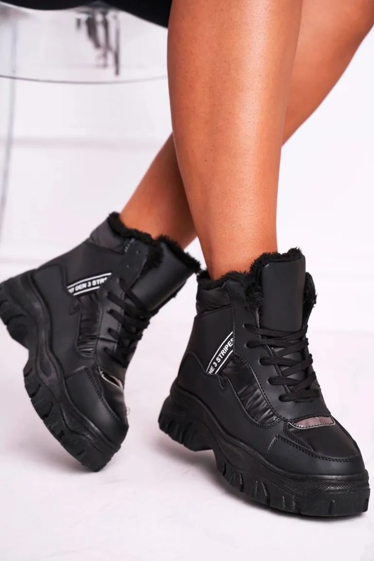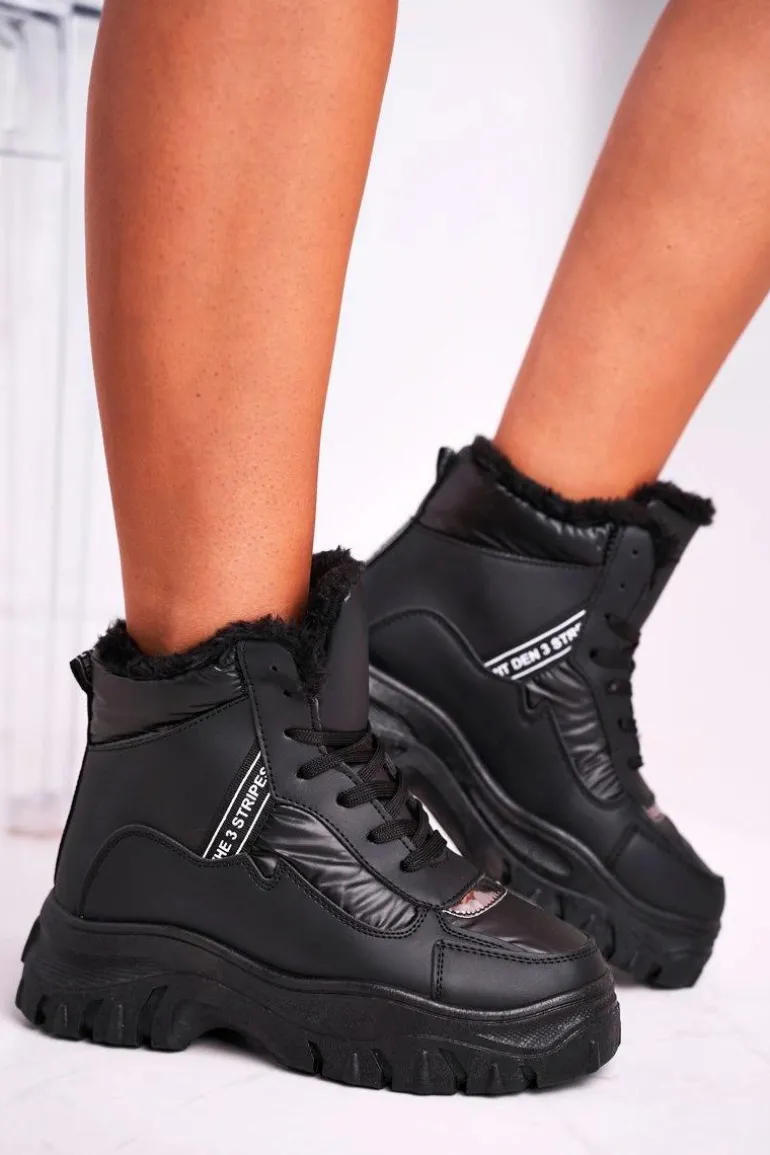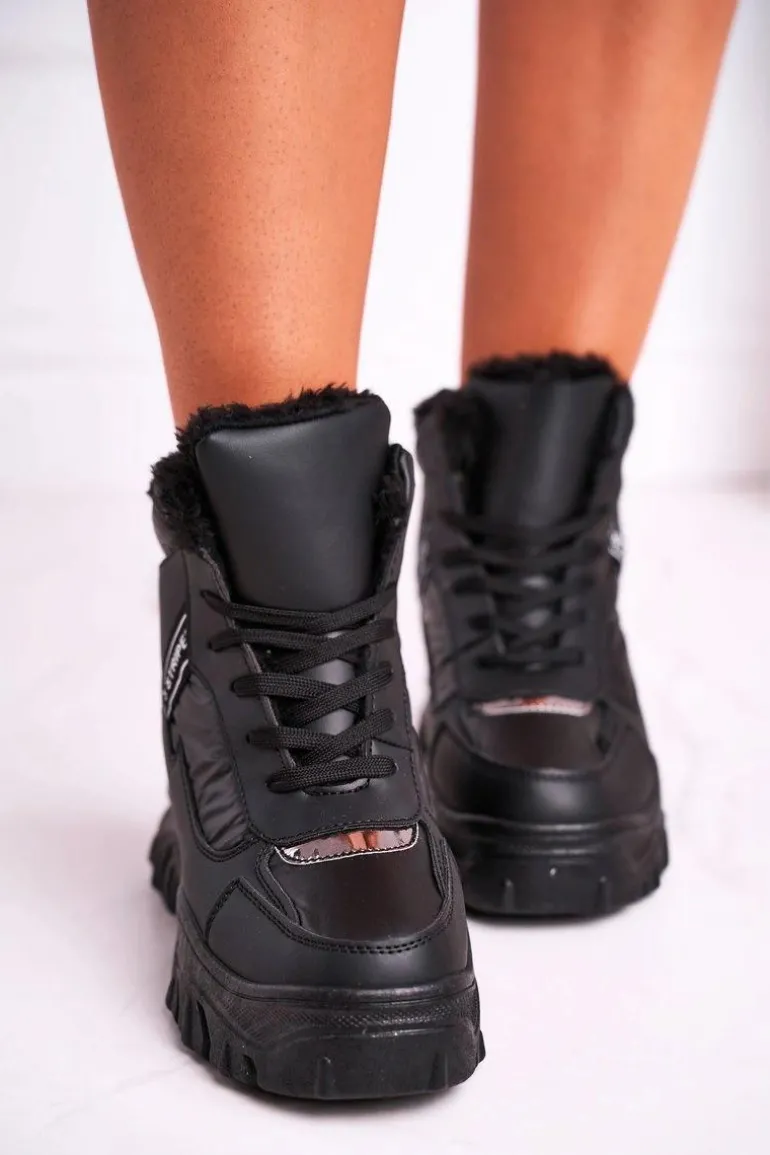 Damskie Sportowe Śniegowce Z Futerkiem Czarne Euphoria