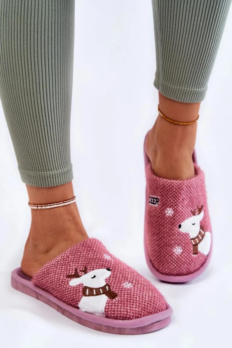 Damskie papcie zostały wykonane z materiału tekstylnego z dodatkiem delikatnego eko futerka. Wewnątrz posiadają ocieplenie w postaci koca obuwniczego. Ozdobione z wierzchu motywem renifera i śnieżynek. Miękka wkładka zapewni komfort podczas użytkowania. Osadzone na gumowej, elastycznej podeszwie. Przy wyborze rozmiaru prosimy sugerować się tabelą rozmiarów.
