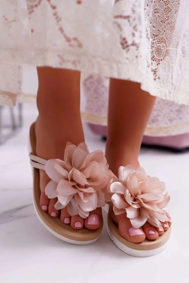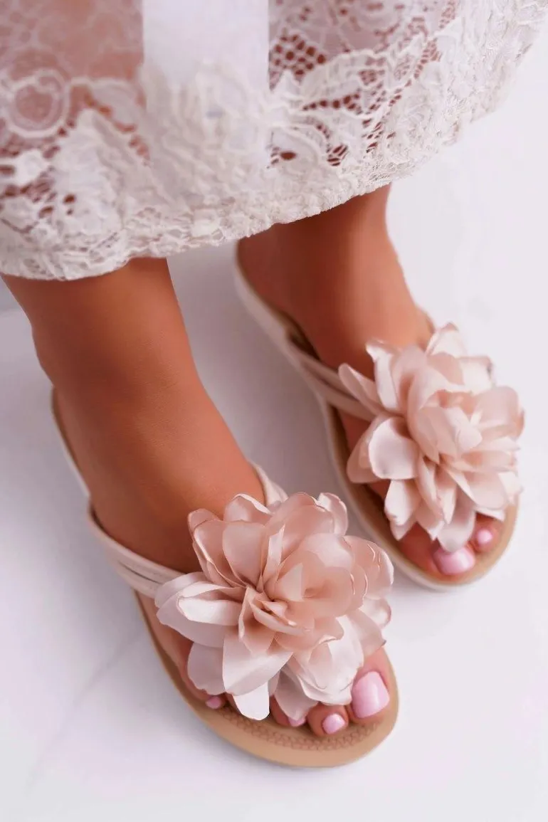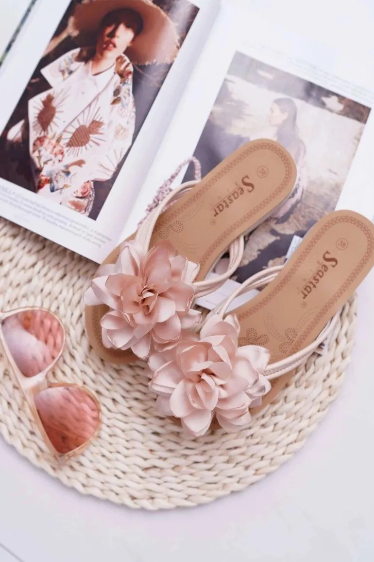 Damskie Szare Klapki Japonki Kwiat Drademos
