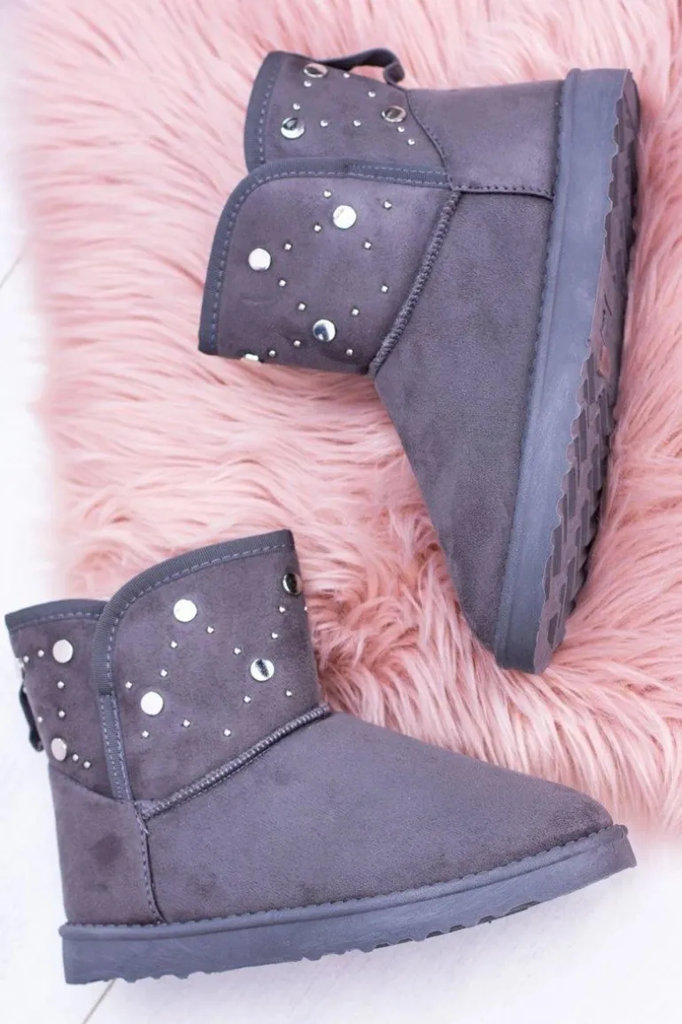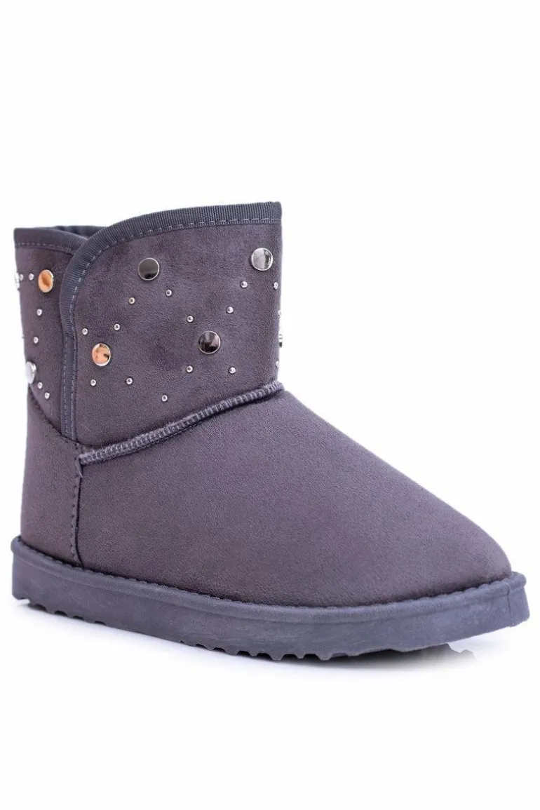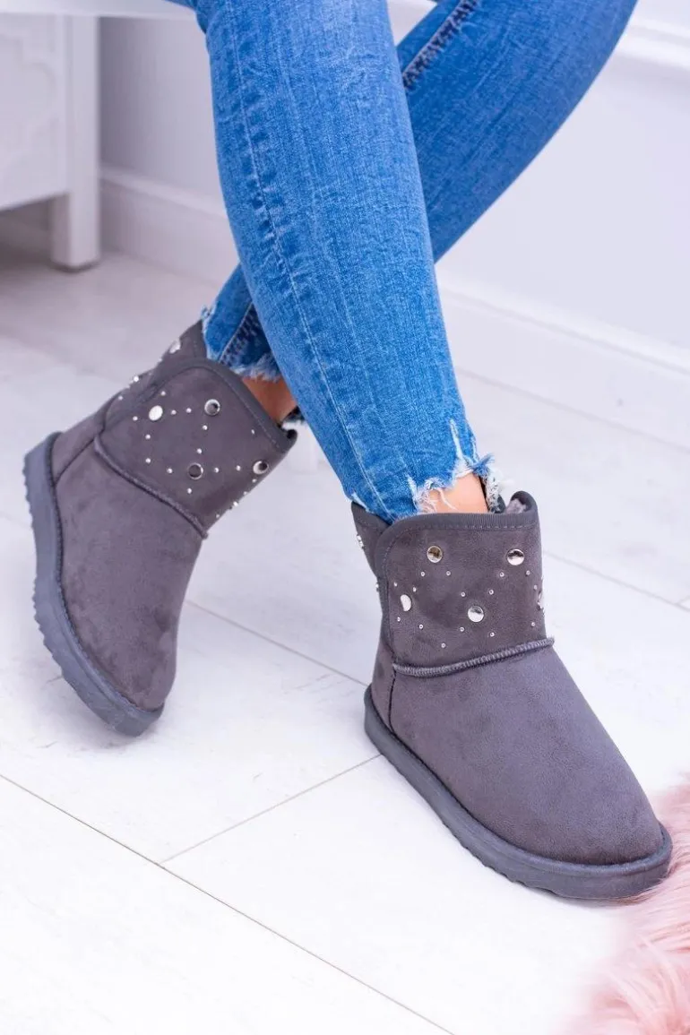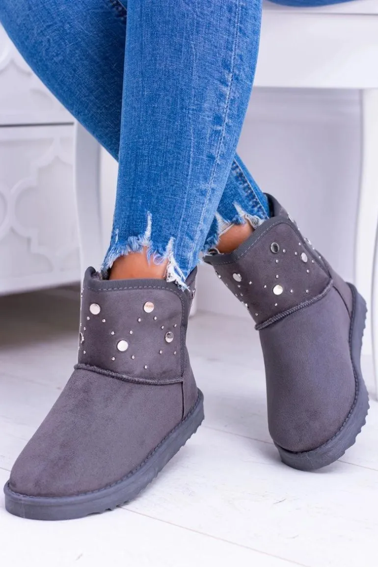 Damskie Szare Ocieplane Botki Śniegowce Zamsz Biggy