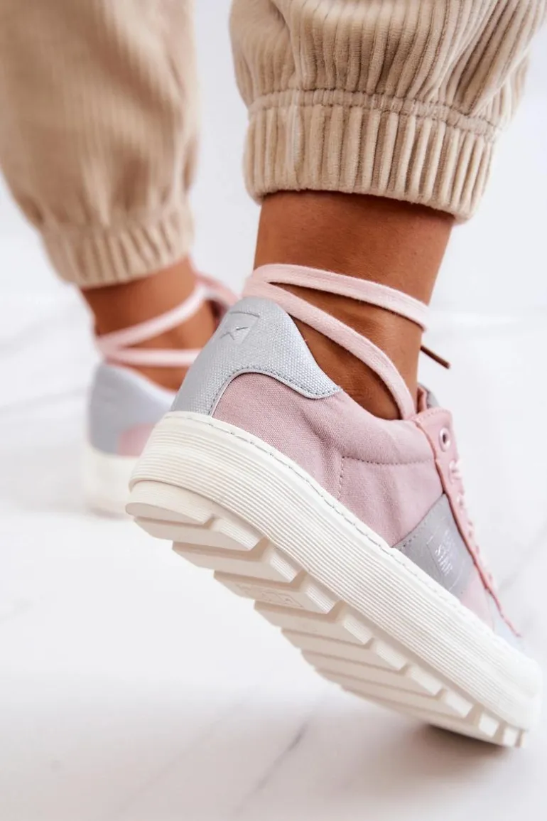 Piękny model tenisówek od marki Big Star! Wykonane z tkaniny, ozdobnie przyszyte kawałki materiałów w innym kolorze. Posiadają masywną, antypoślizgową platformę, która delikatnie uniesie Twoją sylwetkę, a jednocześnie zapewni stabilność na nierównym podłożu. Tenisówki klasycznie wiązane. Świetny model do wielu stylizacji! Przy wyborze rozmiaru prosimy sugerować się tabelą rozmiarów.