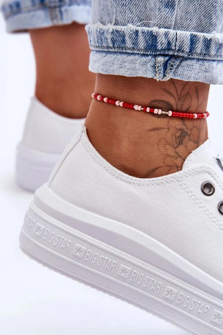 Damskie trampki polskiej marki BIG STAR zostały wykonane z materiału tekstylnego. Posiadają materiałową wkładkę oraz klasyczne sznurowanie. Osadzone na masywnej platformie. Trampki pasują do wielu stylizacji, dlatego koniecznie powinnaś mieć ten model w swojej garderobie! Z pewnością wykorzystasz je w sezonie wiosenno-letnim! Przy wyborze rozmiaru prosimy sugerować się tabelą rozmiarów.