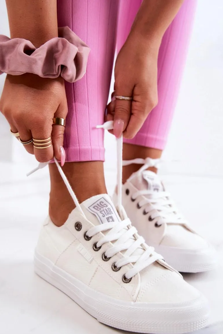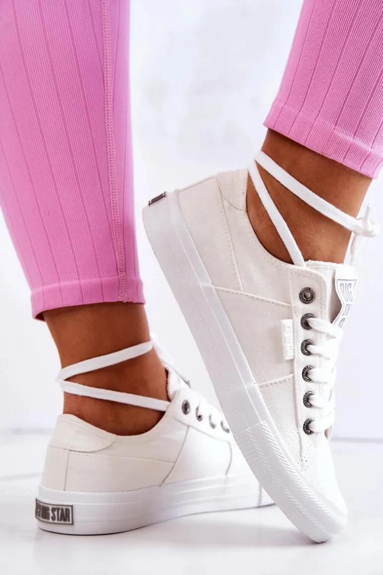 Tenisówki polskiej marki BIG STAR wykonane zostały z tkaniny. Posiadają miękką, materiałową wkładkę oraz antypoślizgową podeszwę. Klasyczny, wiązany model. Wygodne, a zarazem modne. Takie właśnie są te tenisówki! Masywna platforma świetnie izoluje od podłoża. Powinnaś mieć je w swojej szafie! Przy wyborze rozmiaru prosimy sugerować się tabelą rozmiarów.