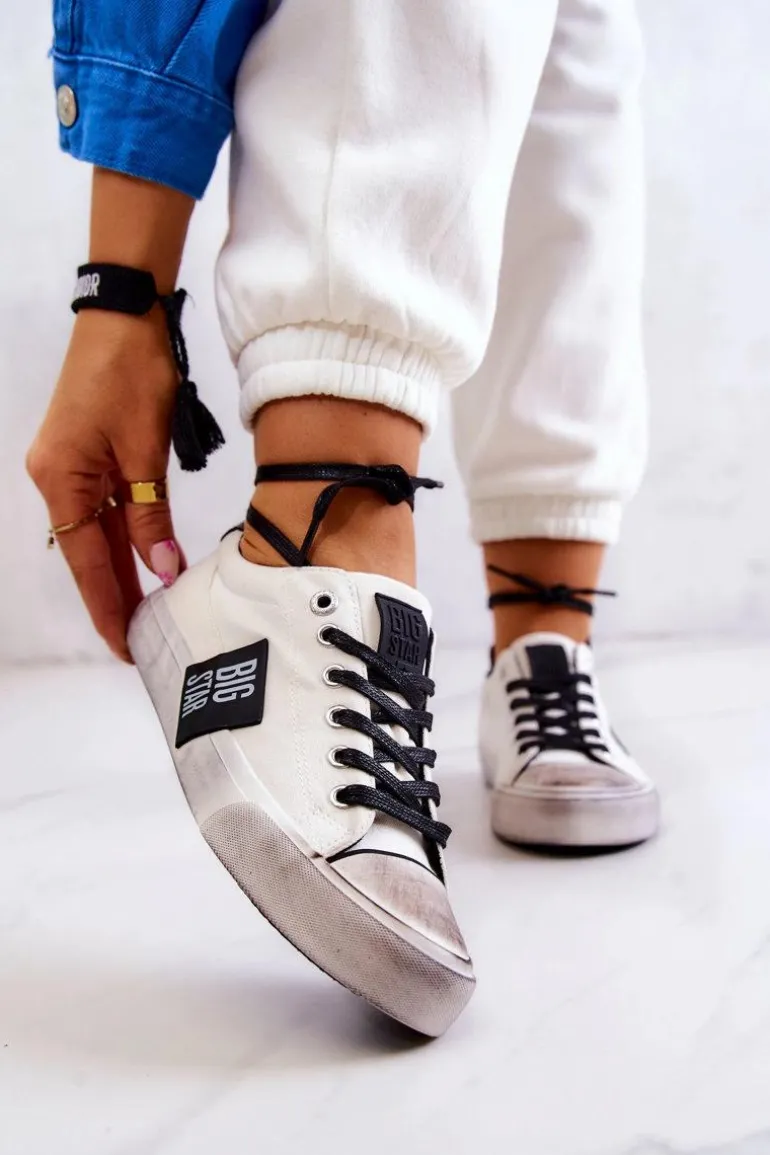 Klasyczny model został wykonany z tkaniny. Na nosku znajduje się gumowe wzmocnienie z modnymi przetarciami. Trampki posiadają wiązanie pozwalające na dopasowanie obuwia do tęgości stopy. Buty posiadają miękką, materiałową wkładkę oraz antypoślizgową podeszwę. Logo z boku sprawia, że będziesz w nich wyróżniać się spośród tłumu! Koniecznie sprawdź całą naszą kolekcję butów BIG STAR. Przy wyborze rozmiaru prosimy sugerować się tabelą rozmiarów.