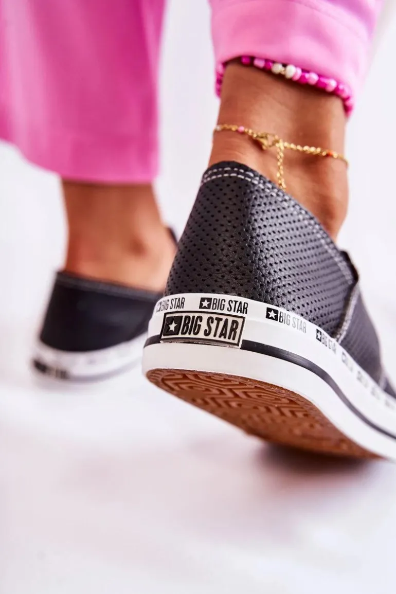 Damskie trampki polskiej marki Big Star. Obuwie wykonane jest z wysokiej jakości ażurowej eko skóry. O Twój komfort zadba miękka, materiałowa wkładka oraz logowana, antypoślizgowa podeszwa. Koniecznie sprawdź całą naszą kolekcję butów BIG STAR. Przy wyborze rozmiaru prosimy kierować się tabelą rozmiarów.