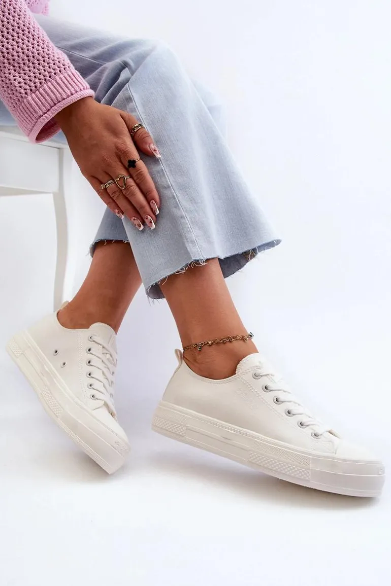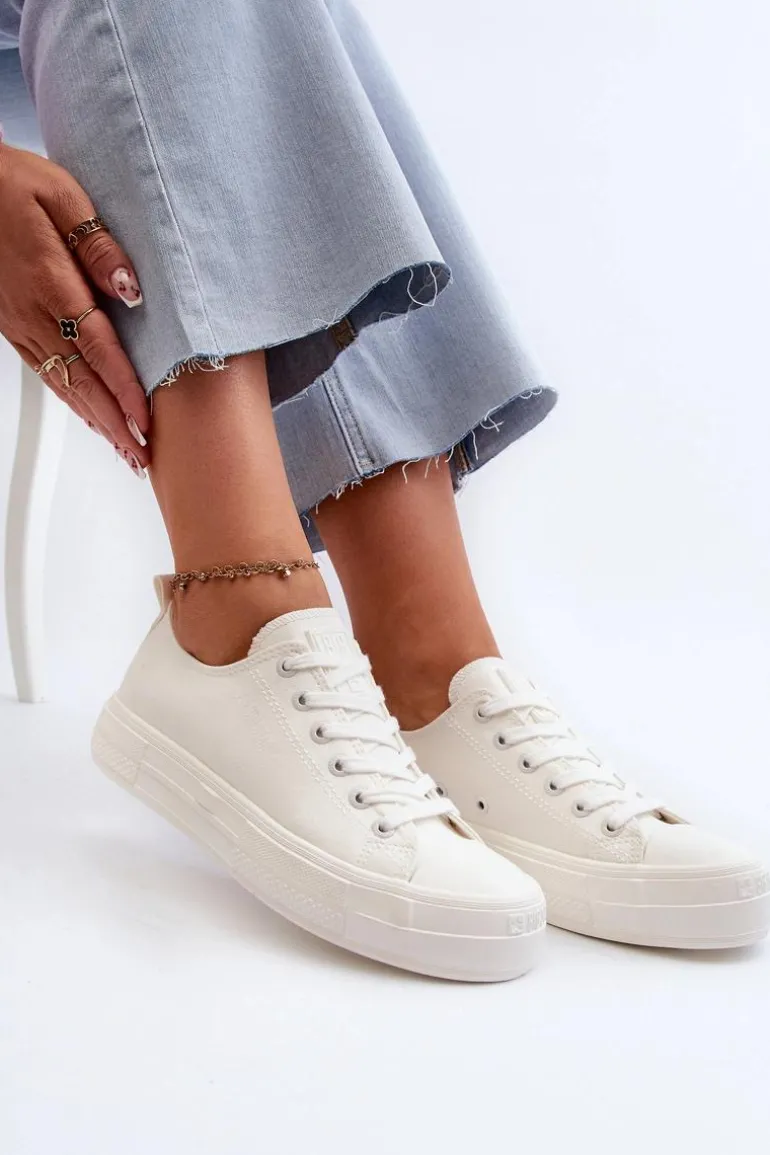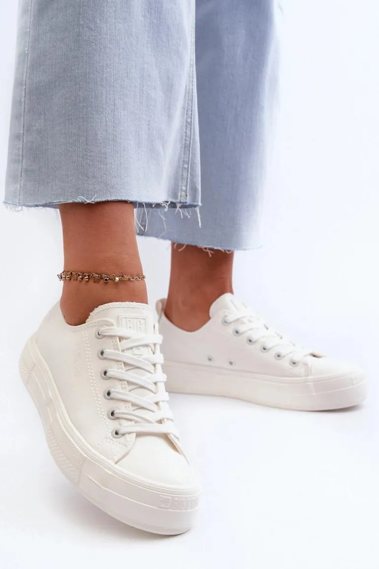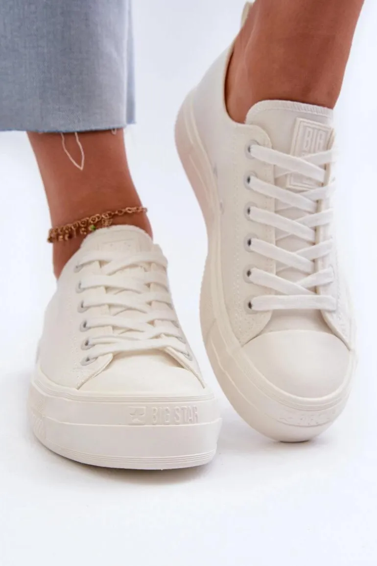 Damskie trampki marki BIG STAR są wykonane z wysokiej jakości materiału tekstylnego, co zapewnia komfort noszenia. Posiadają klasyczne sznurowanie oraz wygodną materiałową wkładkę. Osadzone na masywnej platformie, są one nie tylko stylowe, ale także stabilne. Idealnie pasują do wielu różnych stylizacji, dlatego warto mieć ten model w swojej garderobie na sezon wiosenno-letni! Przy wyborze rozmiaru prosimy sugerować się tabelą rozmiarów.