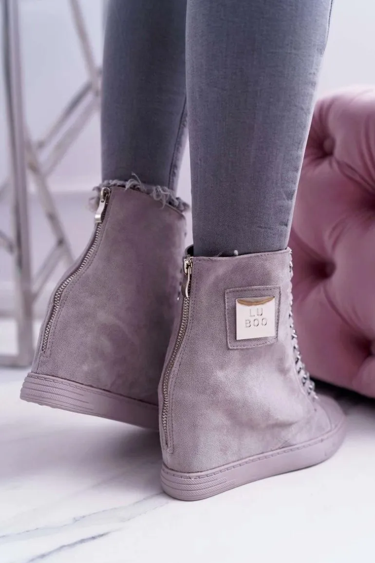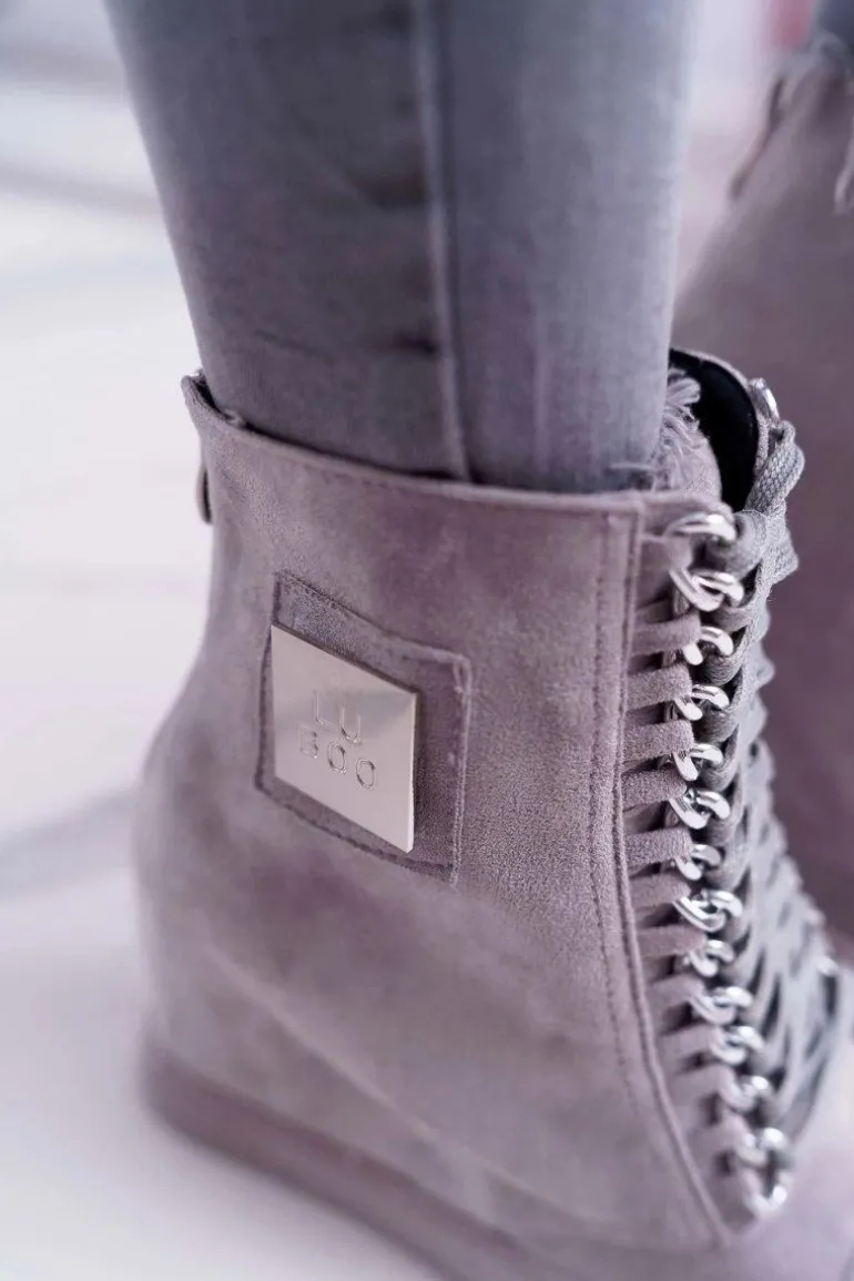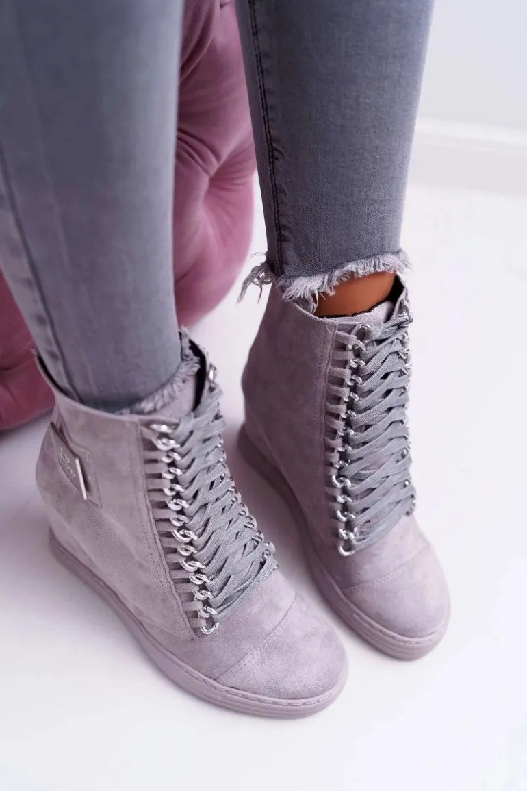 Damskie Trampki Lu Boo Z Łańcuchami Zamszowe Szare Monica