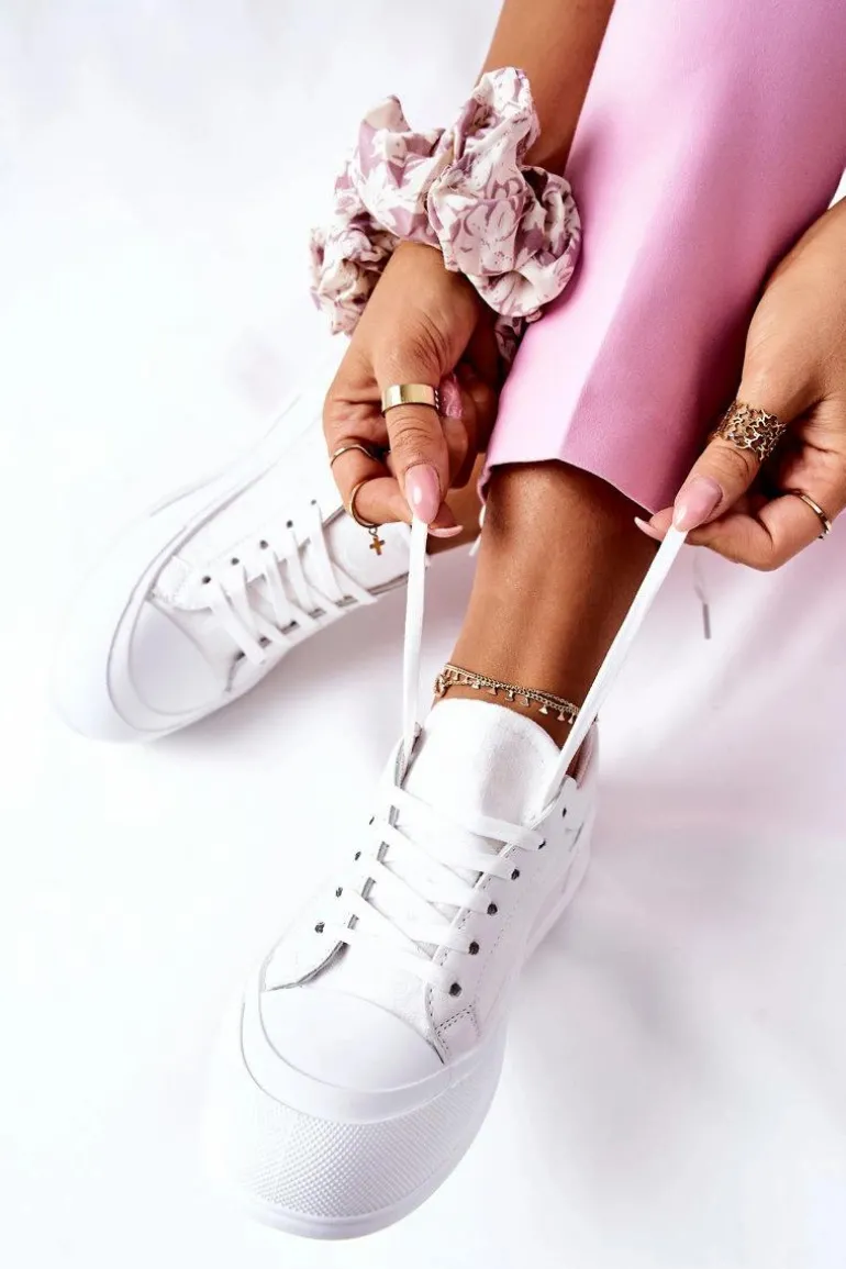 Damskie trampki na platformie to totalny must have! Pięknie wyglądają na nodze, a dodatkowo unoszą sylwetkę. Trampki wykonane z materiału tekstylnego oraz skóry ekologicznej. Przy wyborze rozmiaru prosimy sugerować się tabelą rozmiarów.