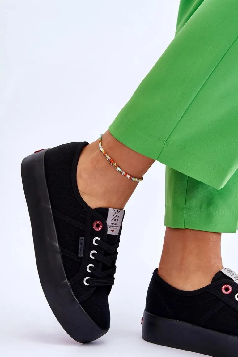 Damskie tenisówki na platformie CROSS JEANS. Buty dobrze dopasowują się do kształtu stopy, posiadają miękką, materiałową wkładkę oraz antypoślizgową podeszwę wykonaną z gumowego tworzywa. Dodatkowo trampki te posiadają usztywniany zapiętek. Koniecznie sprawdź całą naszą kolekcję butów marki CROSS JEANS! Przy wyborze rozmiaru prosimy sugerować się tabelą rozmiarów.