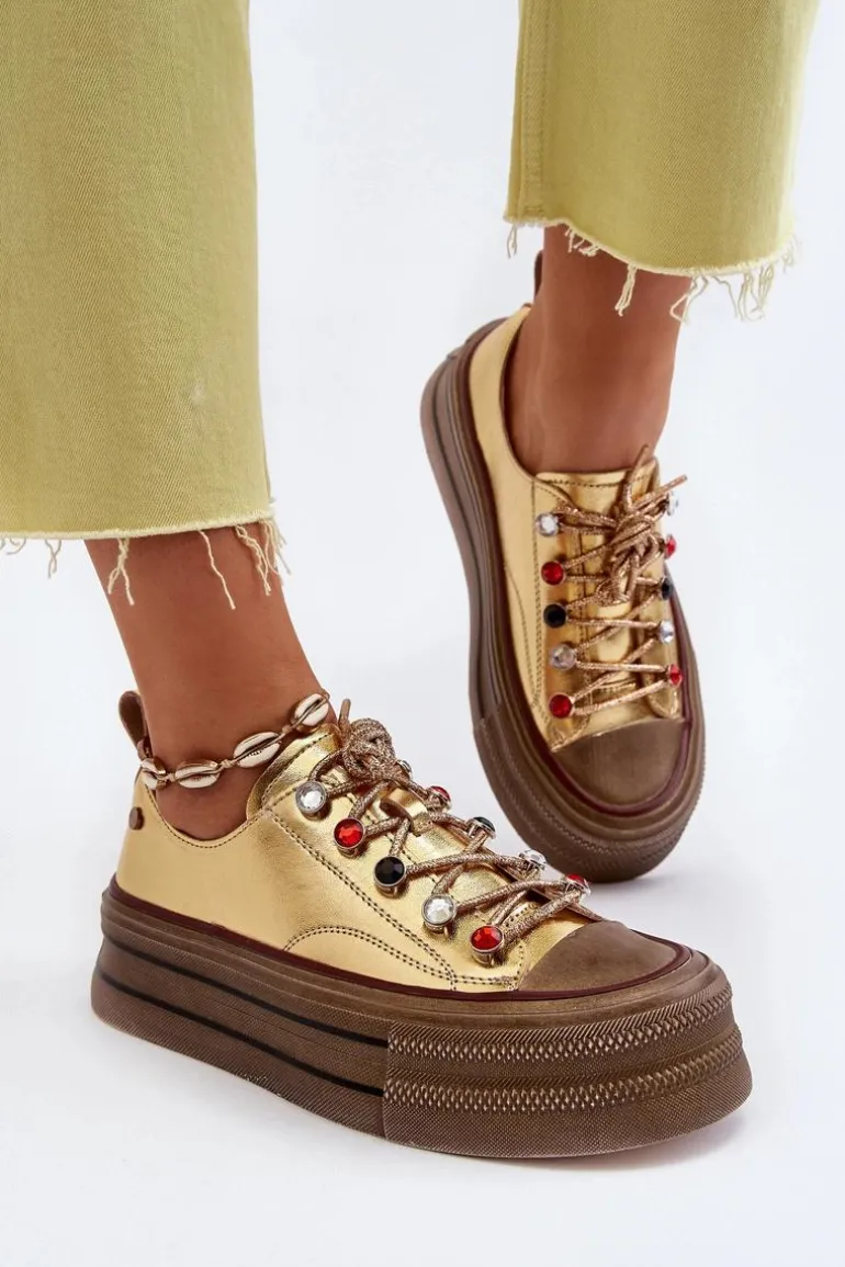 Damskie Trampki Na Platformie GOE NN2N4055 Złote