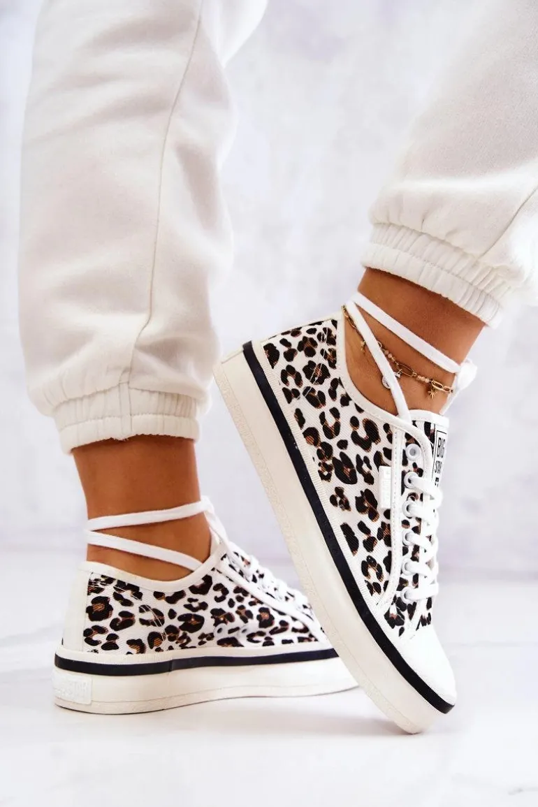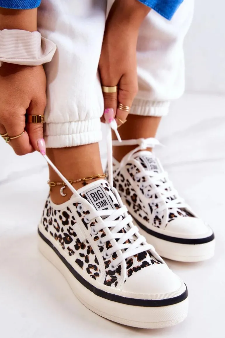 Materiałowa cholewka jest idealna na letnie dni, ponieważ jest przewiewna i wygodna w codziennym użytkowaniu. Trampki posiadają materiałową, odporną na ścieranie wkładkę. Zabezpieczenie przed zsunięciem oraz dopasowanie do stopy zapewni wiązanie. Gumowa podeszwa jest antypoślizgowa oraz elastyczna. Nosek jest wzmacniany gumowym tworzywem. Buty posiadają usztywniany zapiętek. Modny print świetnie sprawdzi się do basicowych stylizacji.Przy wyborze rozmiaru prosimy sugerować się tabelą rozmiarów.