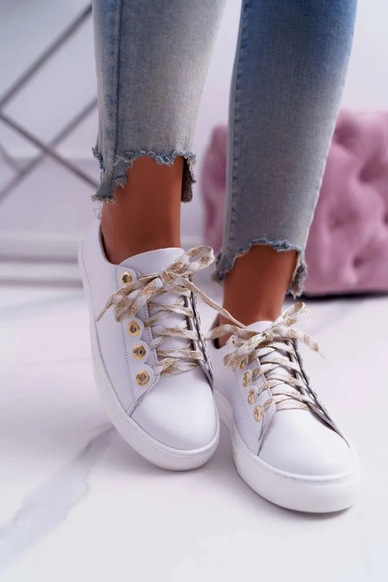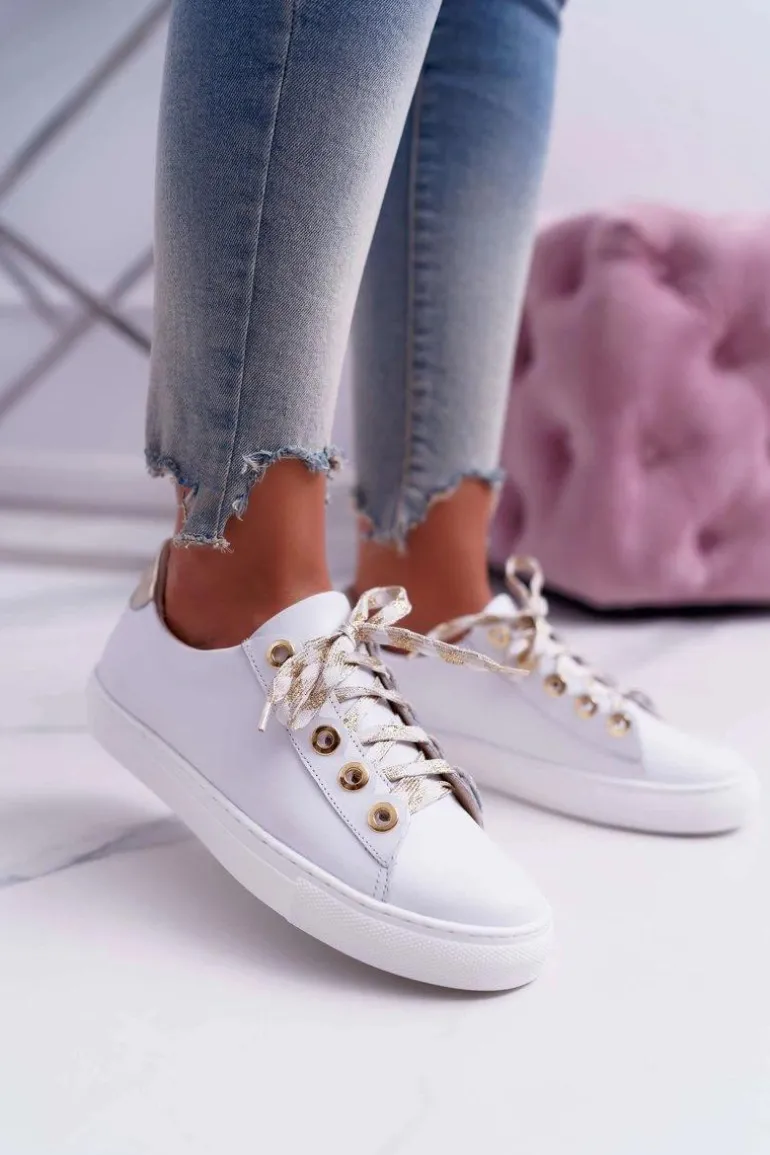 Damskie Trampki Skórzane Białe Viss