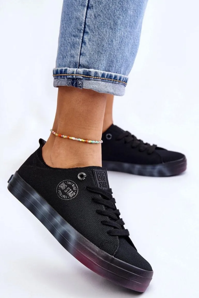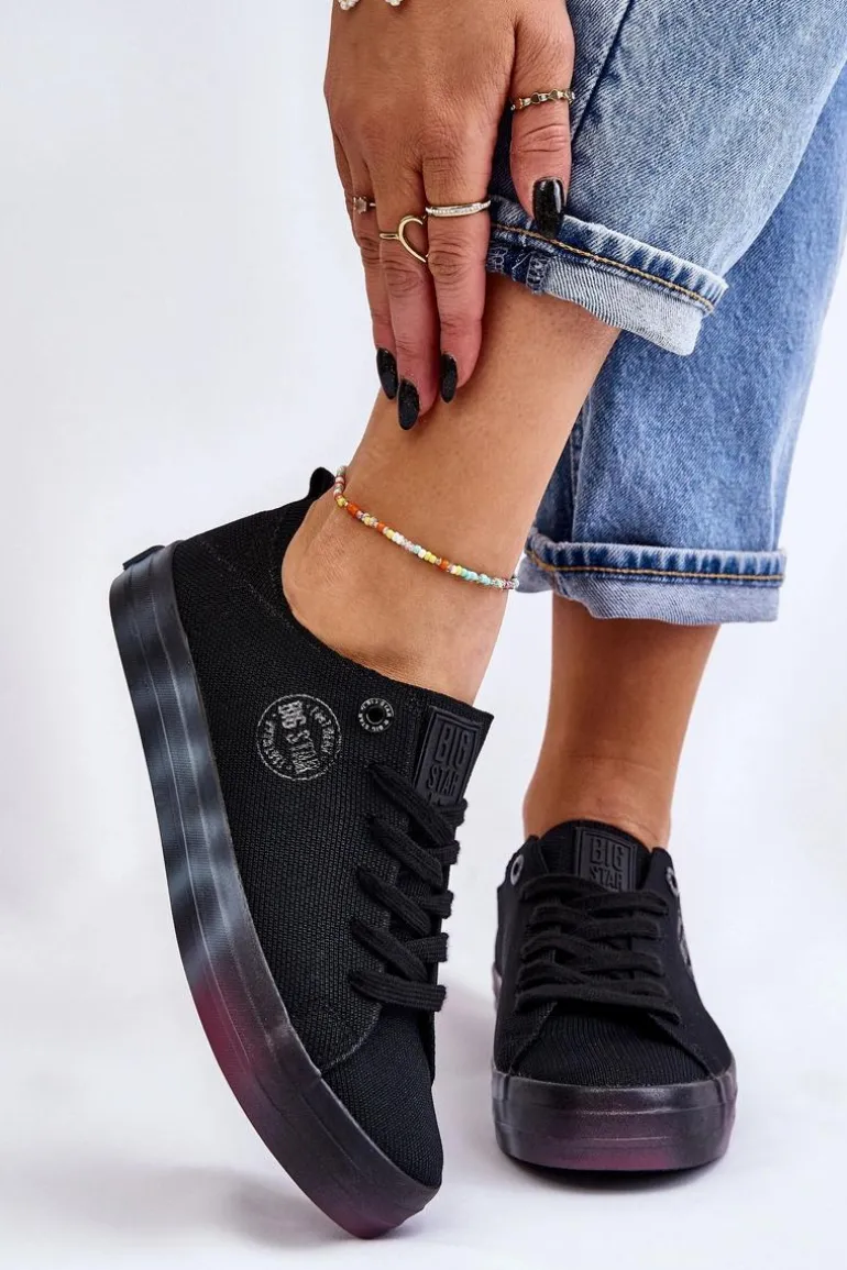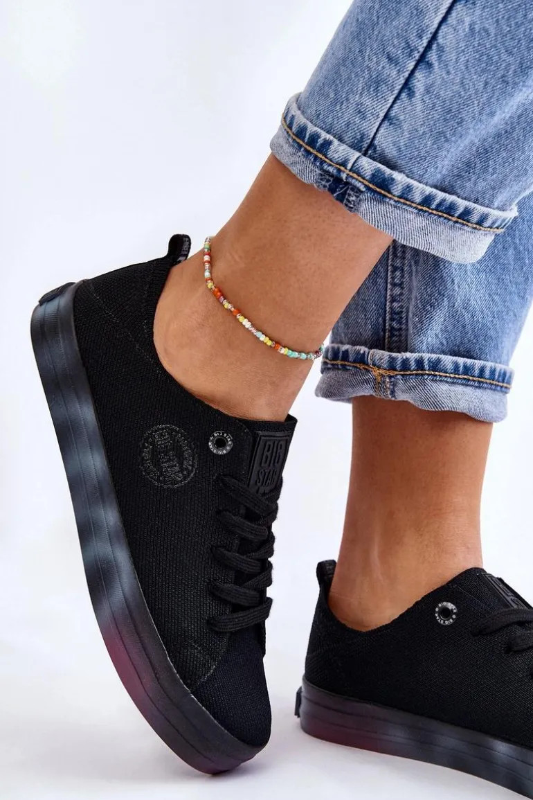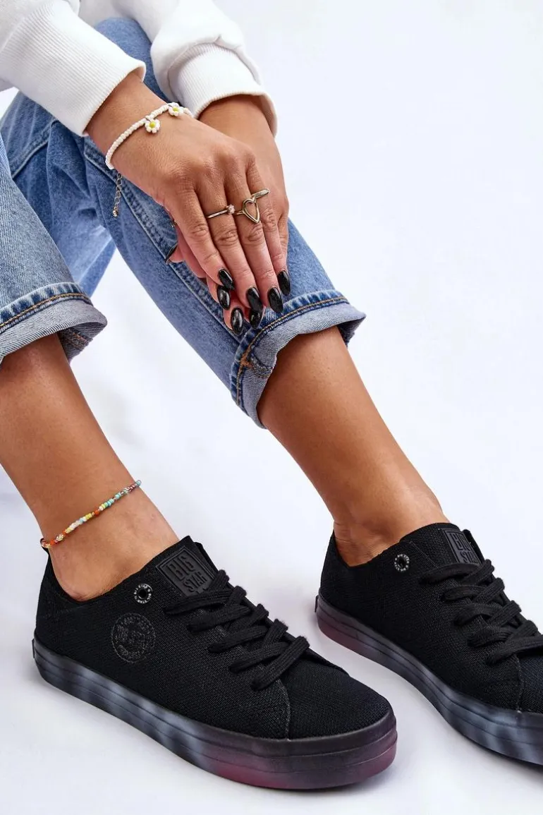 Wyjątkowe, damskie trampki marki Big Star! Z tymi butami na pewno wyróżnisz się z tłumu! Zostały wykonane z materiału tekstylnego. Trampki zostały osadzone na kolorowej platformie oraz antypoślizgowej podeszwie wykonanej z gumowego tworzywa. Zapiętek jest delikatnie wzmocniony dodatkowym materiałem. Miękka wkładka zapewni wygodę podczas użytkowania! Przy wyborze rozmiaru prosimy sugerować się tabelą rozmiarów.