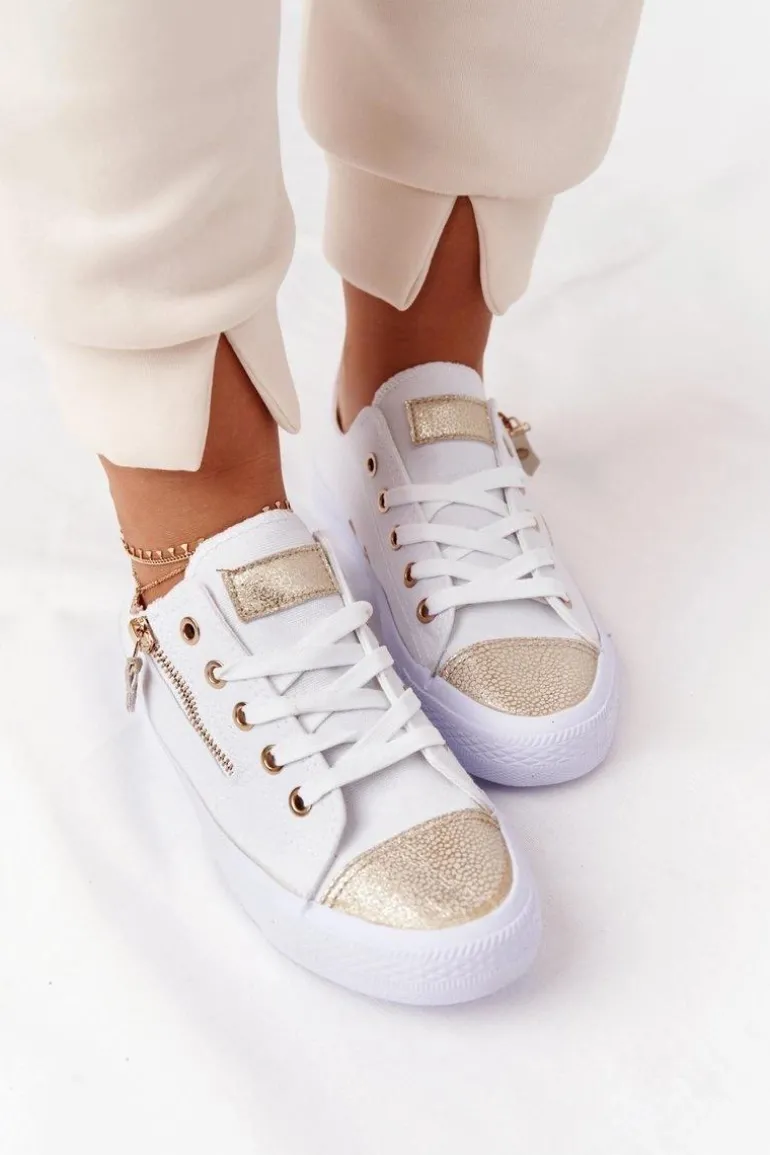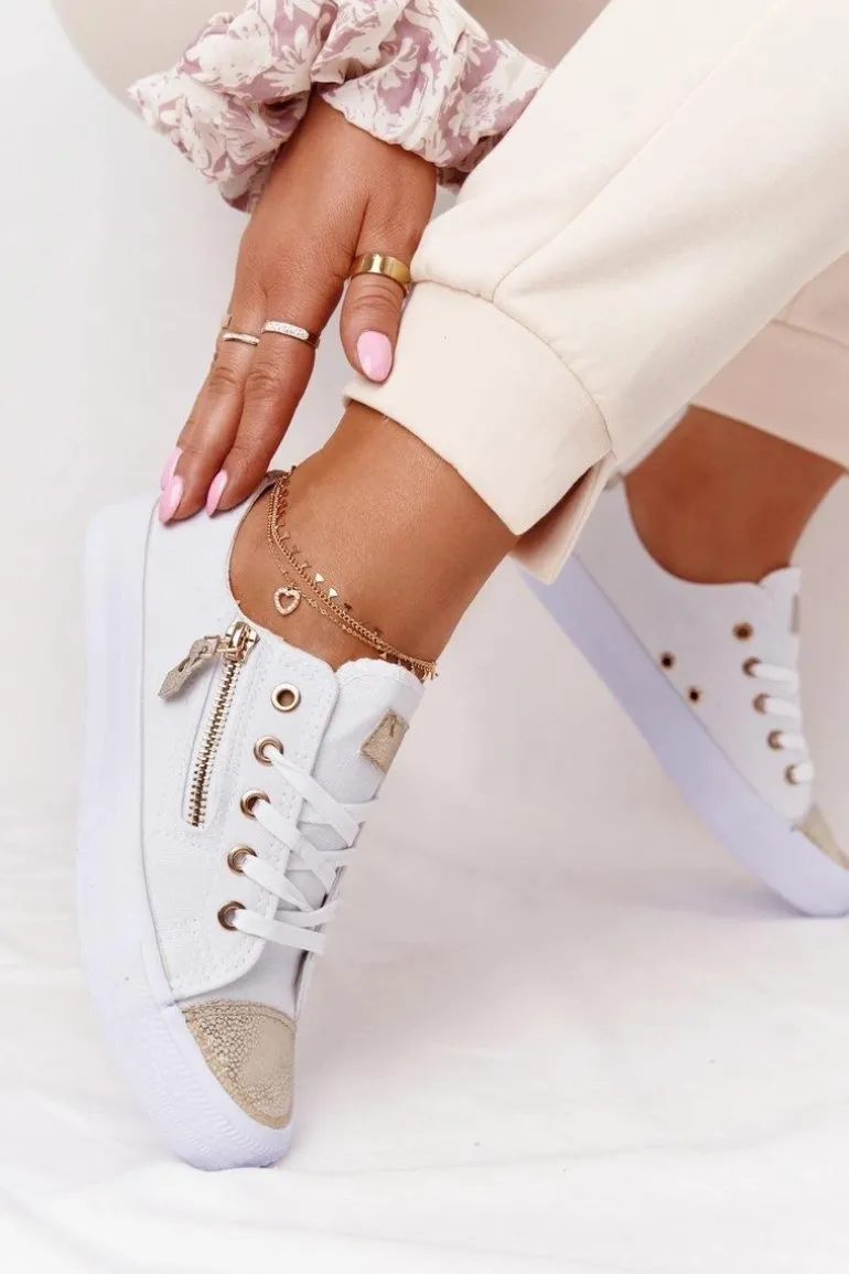Klasyczne trampki ozdobione suwakiem. Trampki pasują do wielu stylizacji, dobrze dopasowują się do kształtu stopy, posiadają miękką, materiałową wkładkę oraz antypoślizgową podeszwę. Koniecznie sprawdź całą naszą kolekcję trampek damskich! Przy wyborze rozmiaru prosimy sugerować się tabelą rozmiarów.
