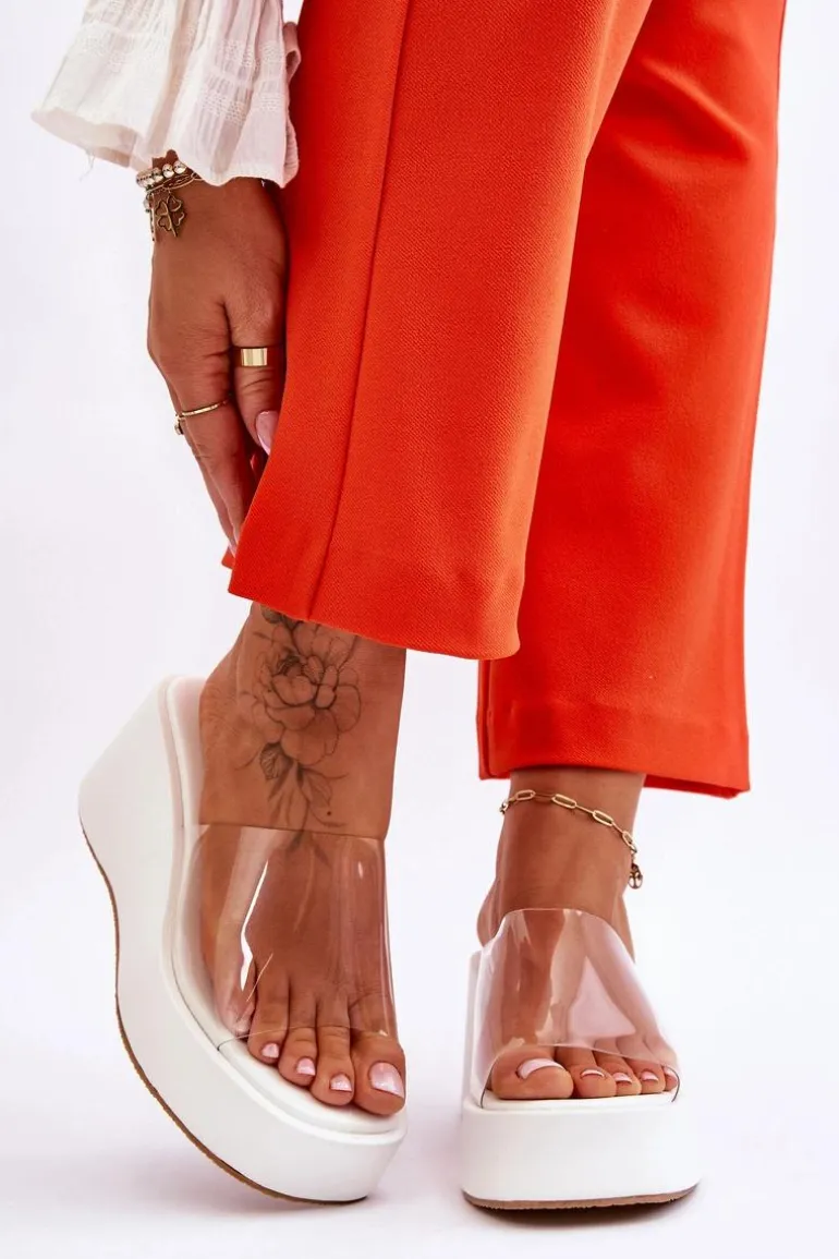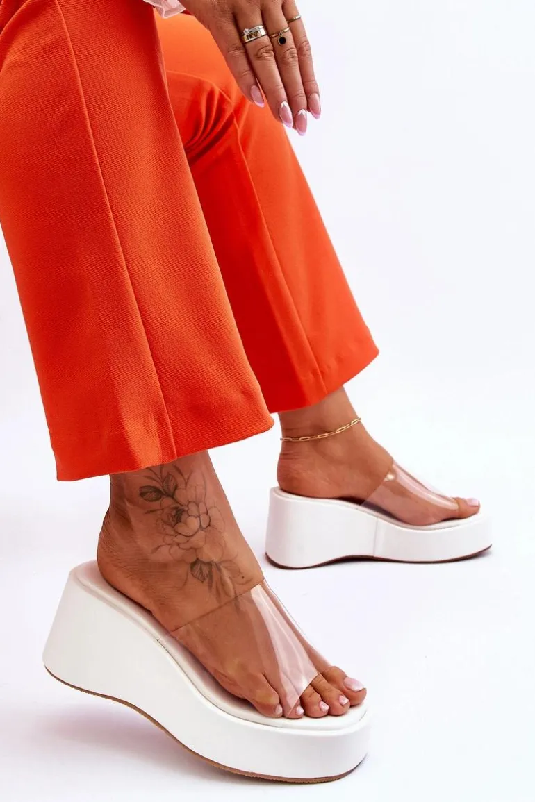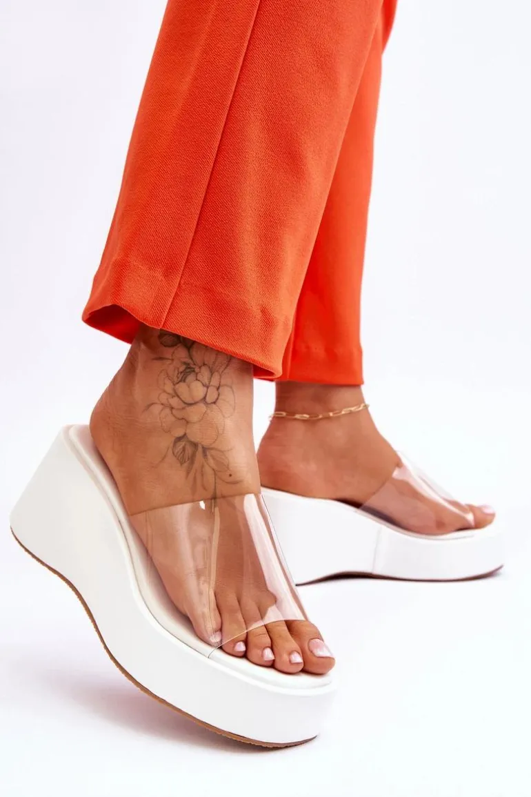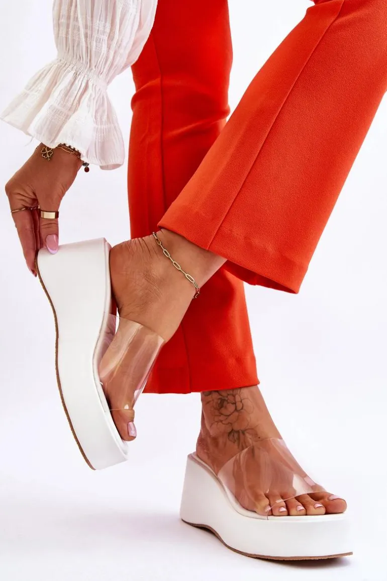 Damskie Transparentne Klapki Na Koturnie Białe Eliane