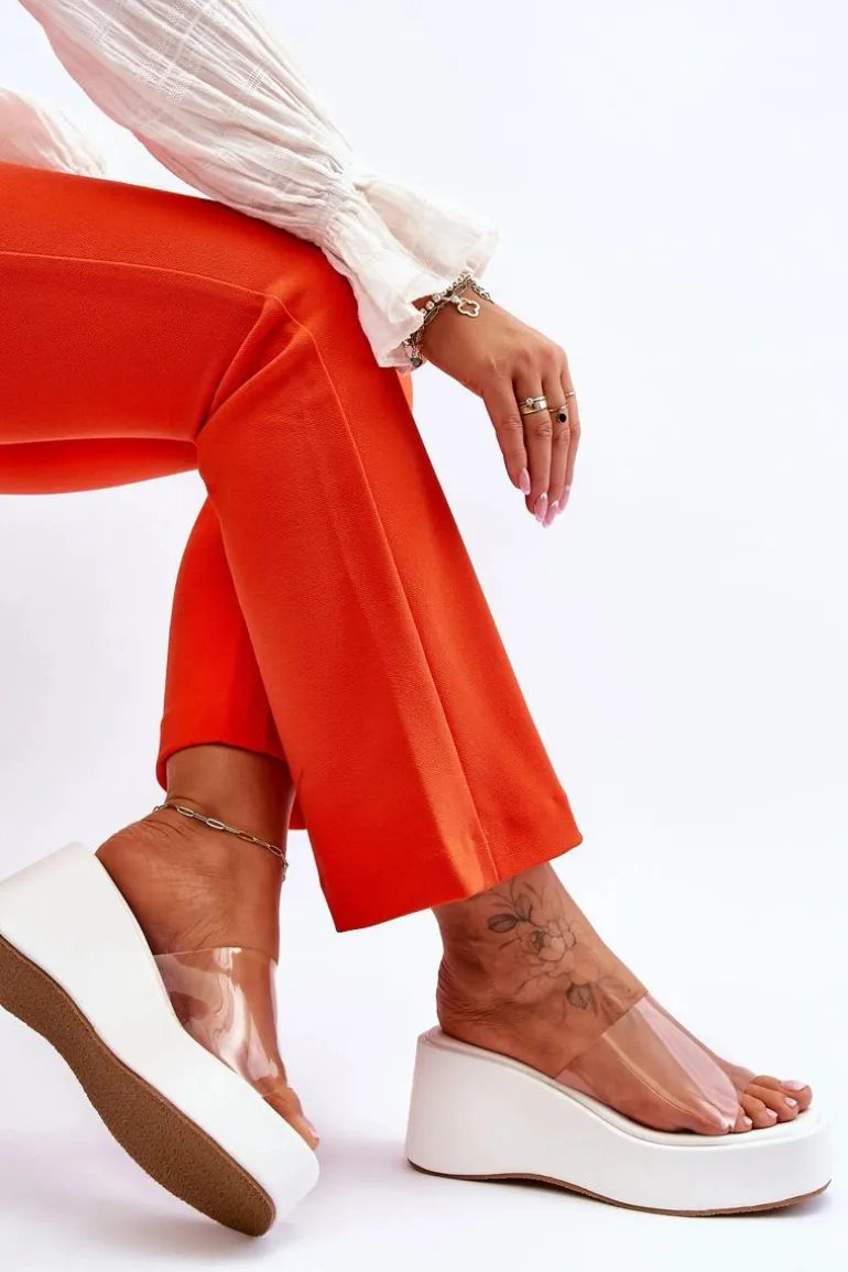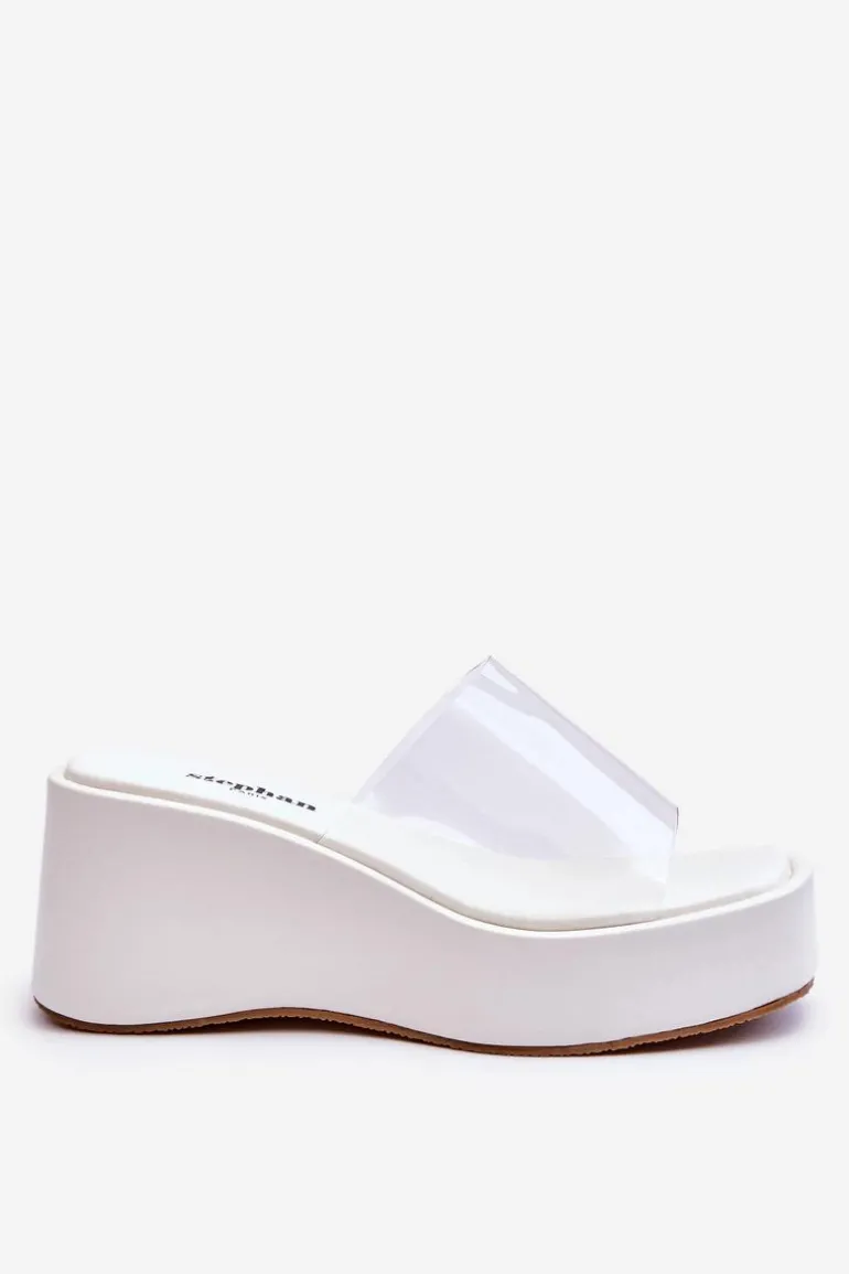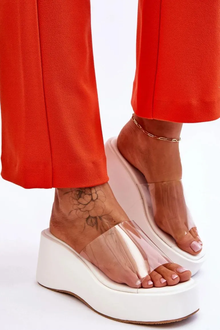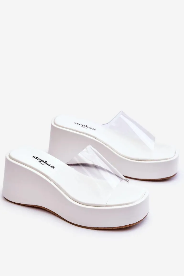 Damskie Transparentne Klapki Na Koturnie Białe Eliane