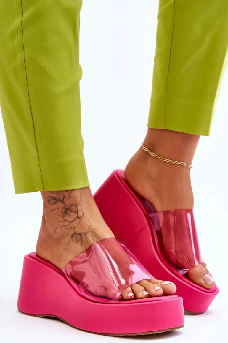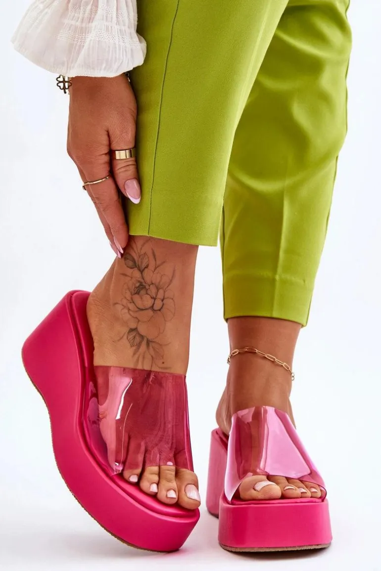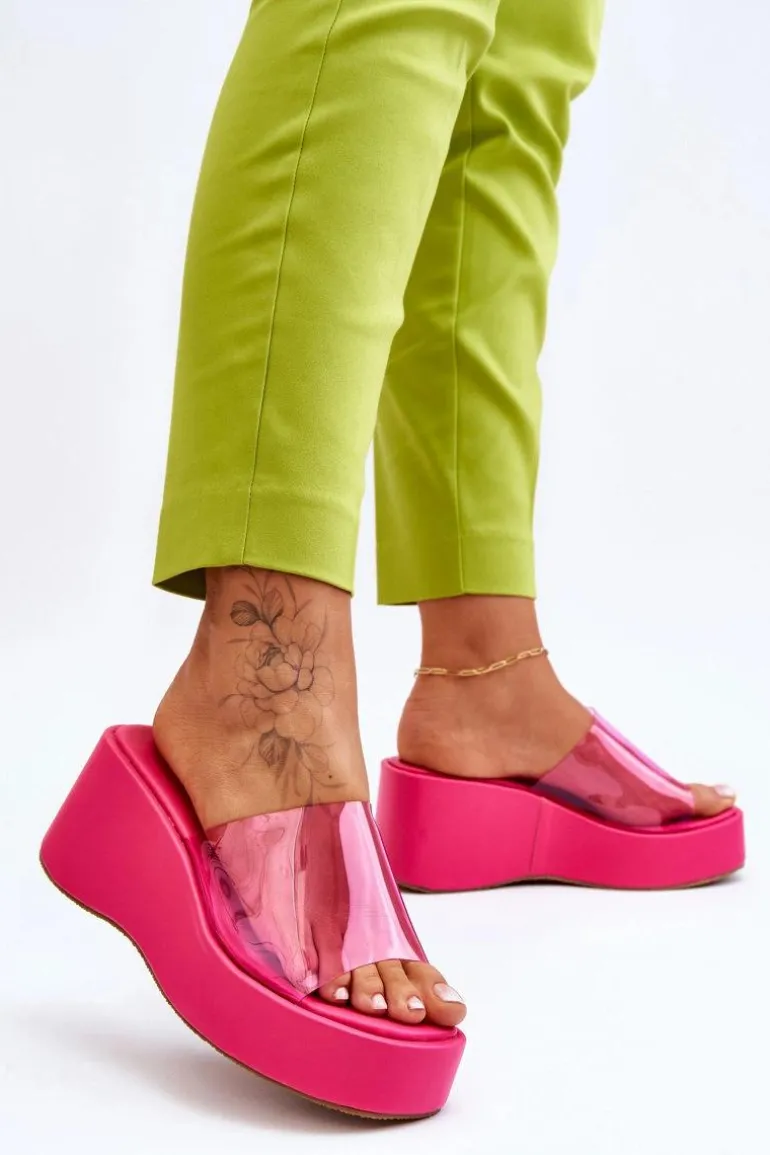 Wyjątkowe, damskie klapki na masywnej platformie i koturnie. Wierzch został wykonany z transparentnego tworzywa sztucznego. Miękka wkładka zapewni wygodne użytkowanie obuwia. Model klasyczny, wsuwany. Z tymi klapkami na pewno stworzysz wiele ciekawych, letnich stylizacji! Przy wyborze rozmiaru prosimy sugerować się tabelą rozmiarów.